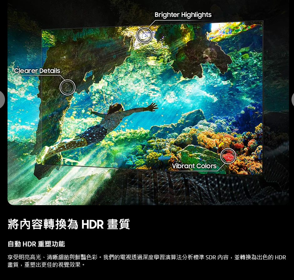 對比度震撼,細節分明,配合Neo Quantum HDR+,令色彩層次更豐富生動。
