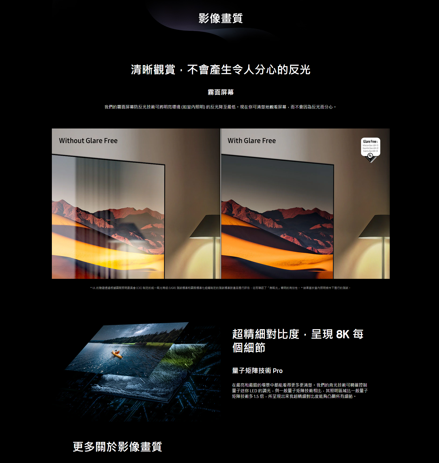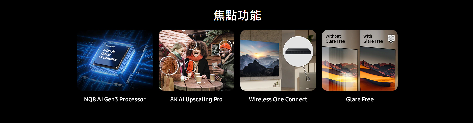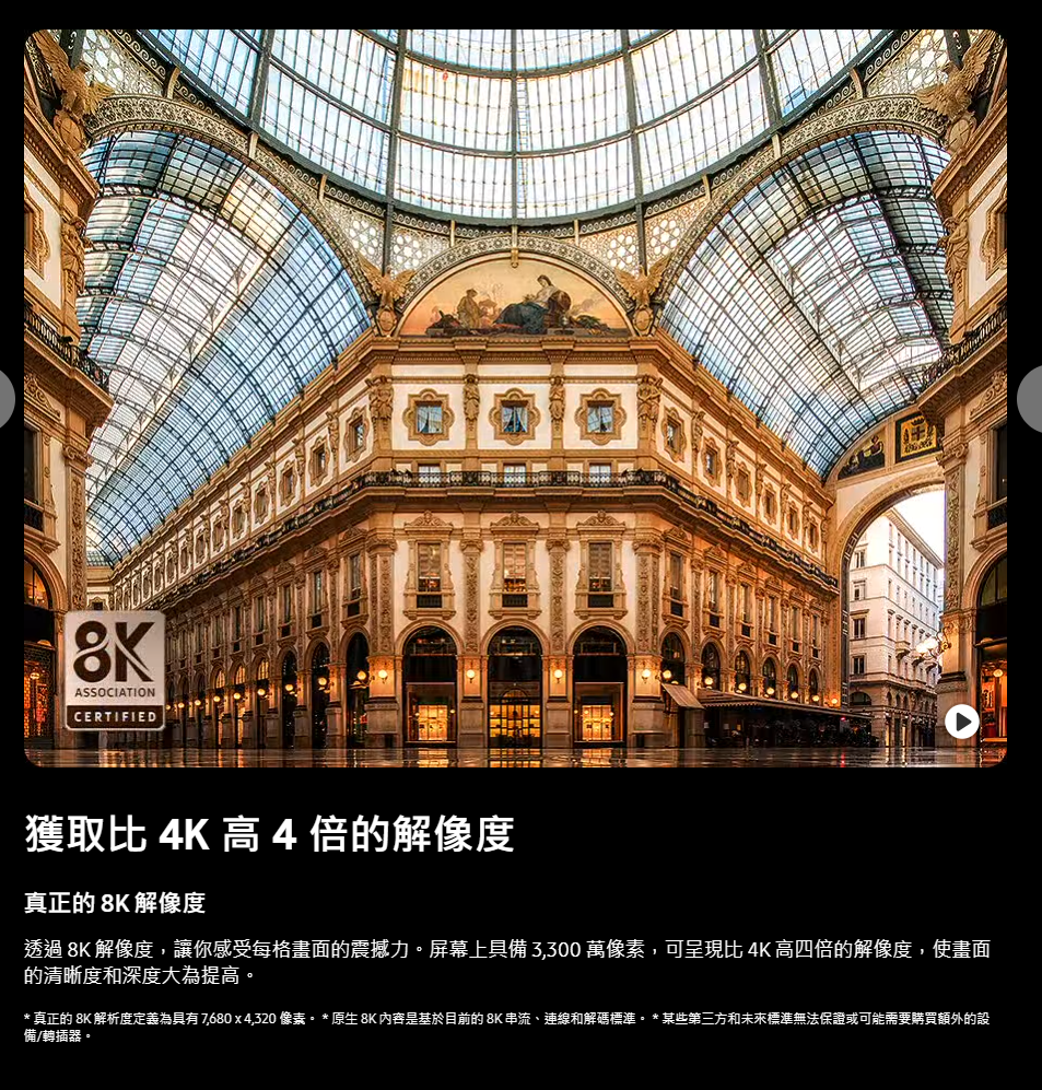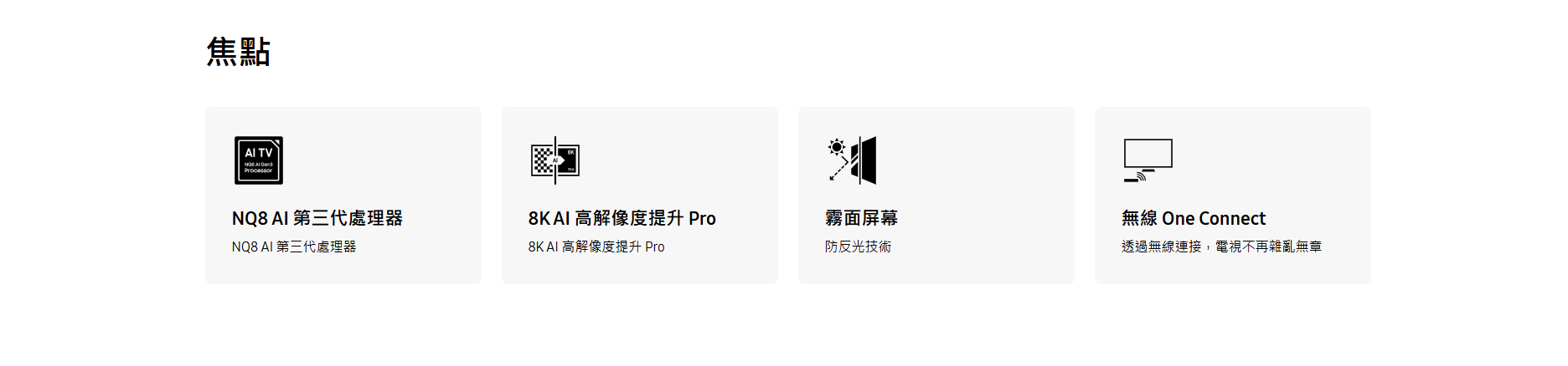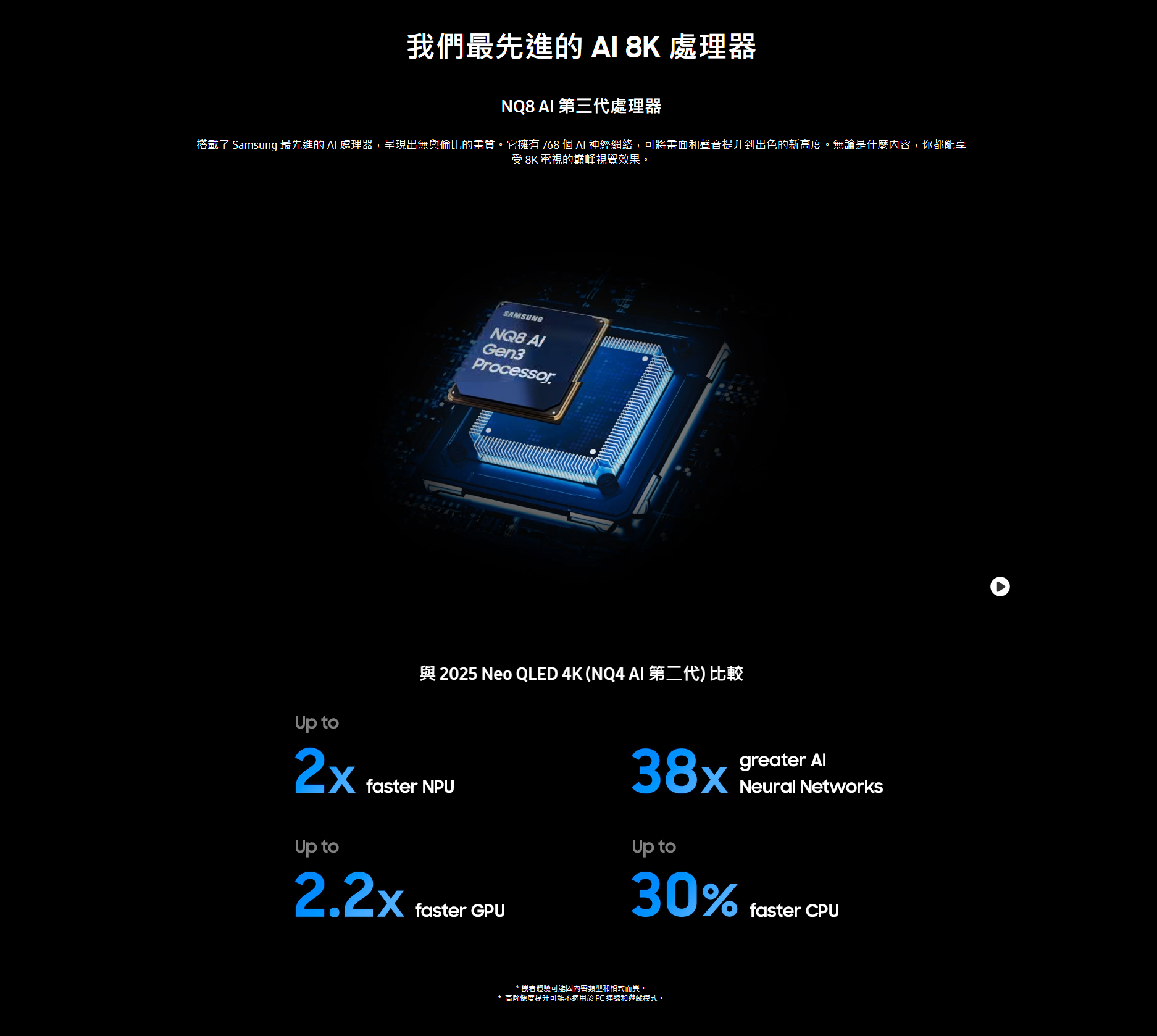 8K AI 高解像度提升 Pro , NQ8 AI 第三代處理器 ,支援 8K 120Hz, 4K 120Hz