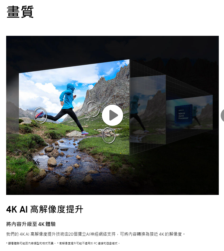 當你使用 OTT 串流媒體服務、玩電視遊戲或觀看賽事直播時,升頻技術可將畫面和聲音提升至 4K 體驗。