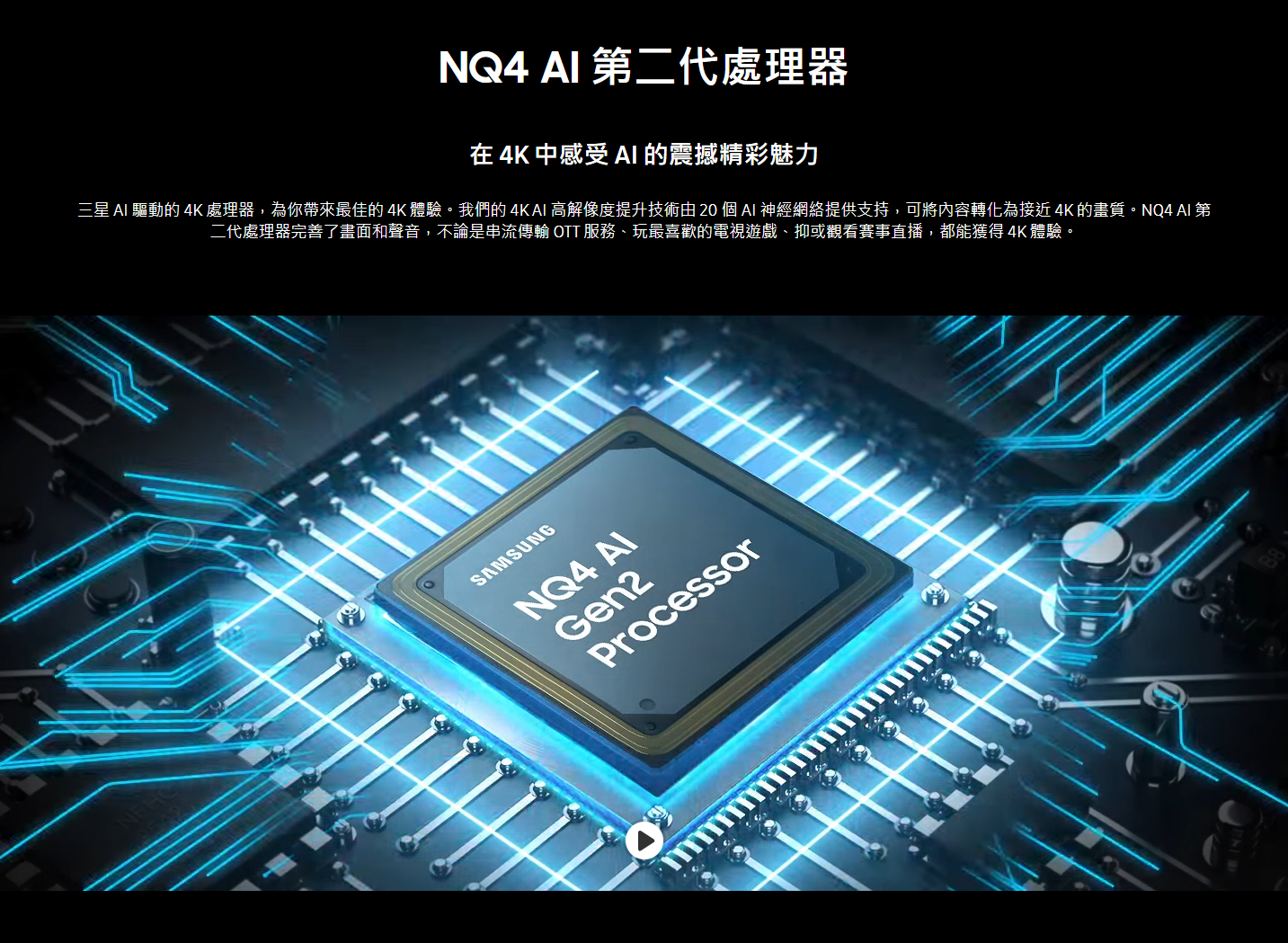 NQ4 AI 第二代處理器為你帶來無與倫比的 4K 體驗。在 20 個人工智能神經網絡的支持下,