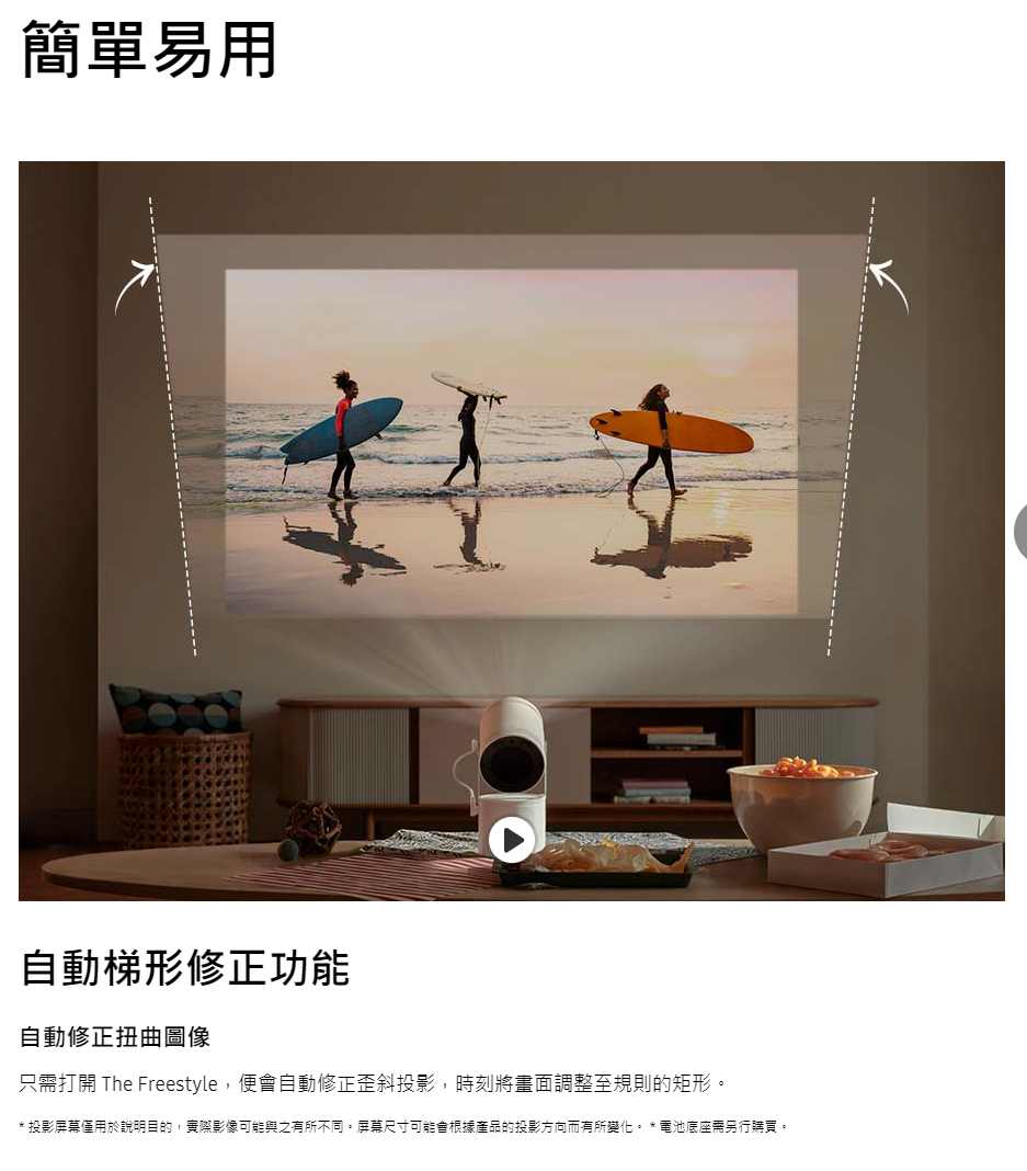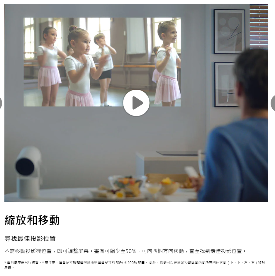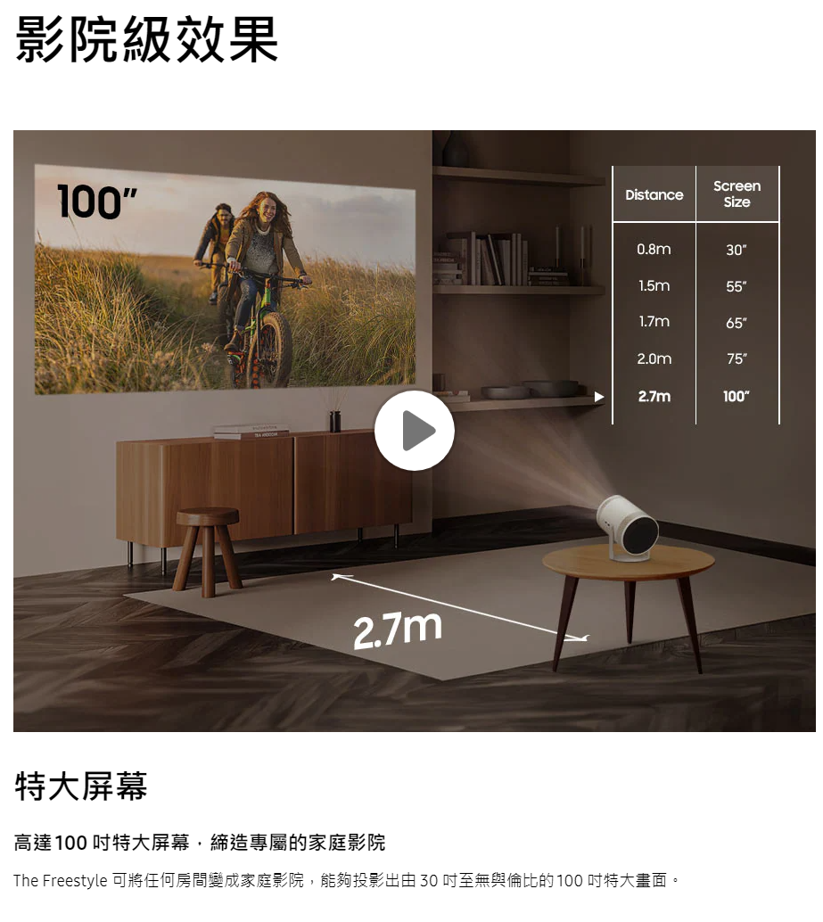 自動校準最大尺寸熒幕由 30 吋至 100 吋超大畫面