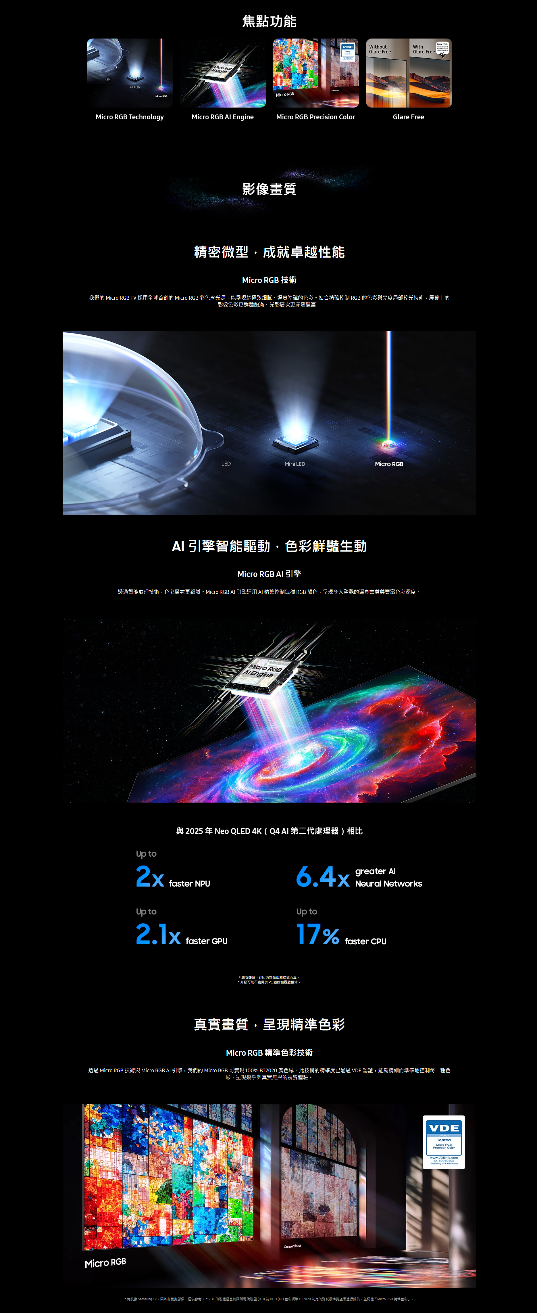 三星 115吋 Micro RGB TV 是現時旗艦級超大尺寸顯示產品,採用全球首創 Micro RGB 新技術,為極致影音娛樂帶來突破。