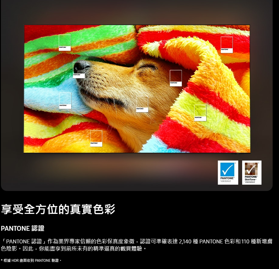 純度極高,徹底消除傳統LED背光混色、偏色等問題,色域覆蓋達100% BT.2020,過渡極自然。
