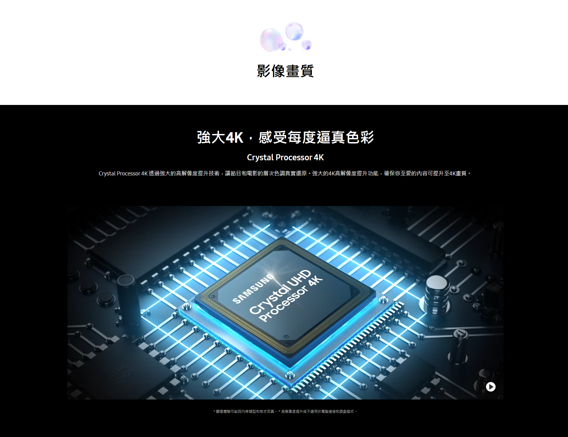 Crystal Processor 4K 透過強大的高解像度提升技術,讓節目和電影的層次色調真實還原。