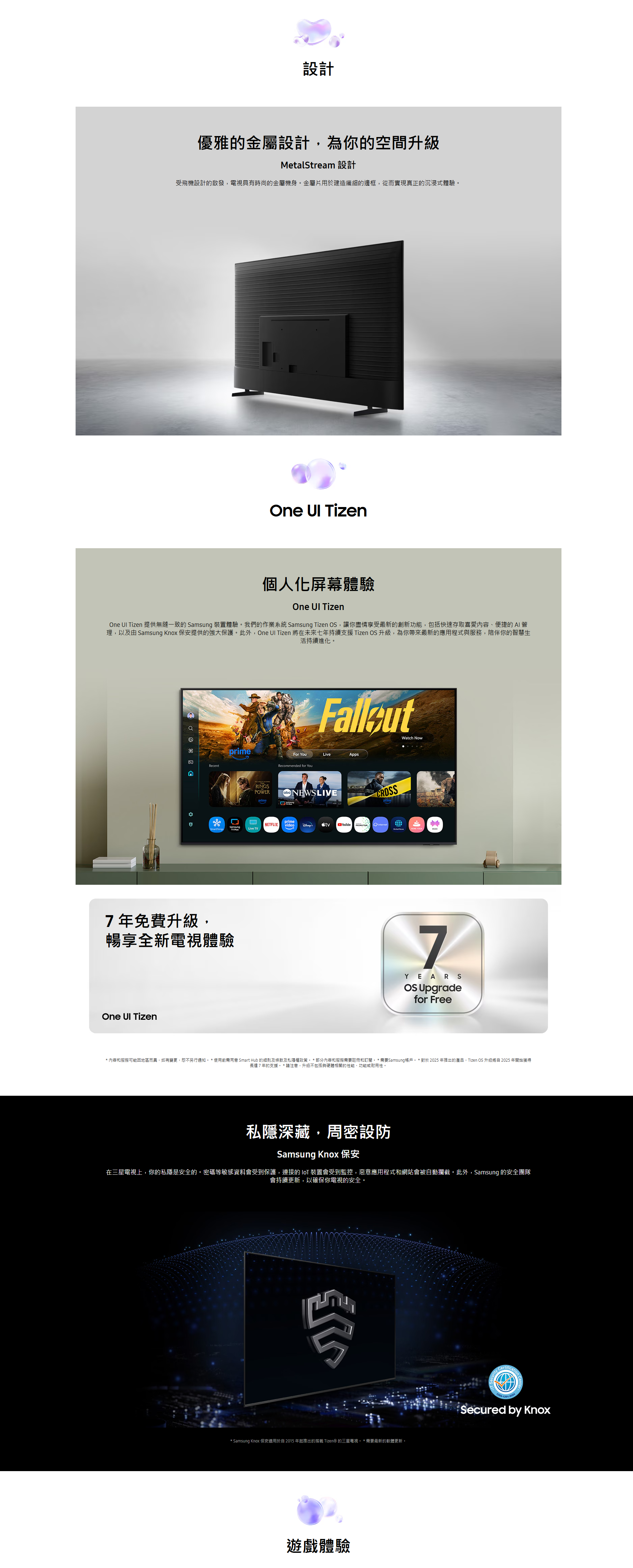 MetalStream 設計,受飛機設計的啟發,電視具有時尚的金屬機身。金屬片用於建造纖細的邊框,從而實現真正的沉浸式體驗。