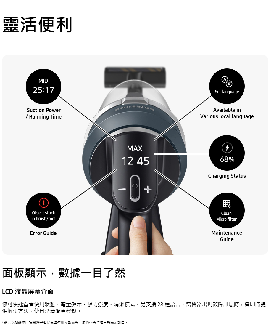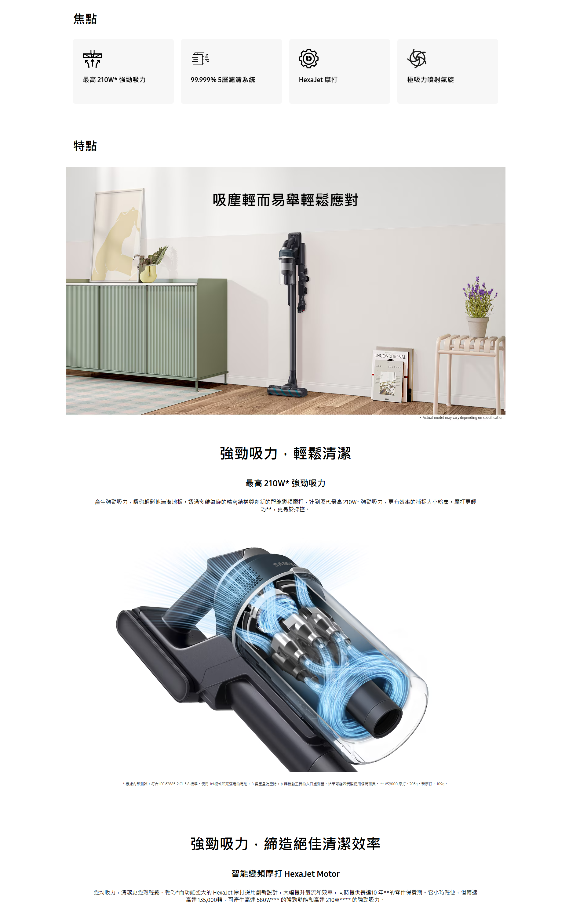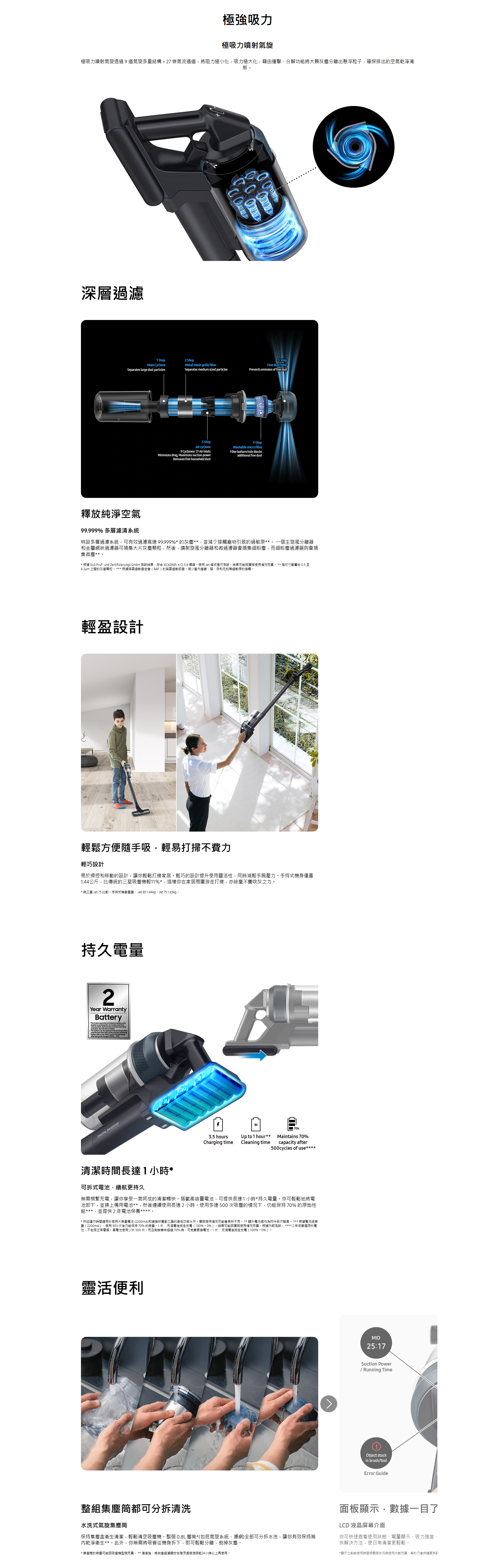 屬於BESPOKE Jet™ Lite Premium系列,集強勁吸力及時尚設計於一身,非常適合現代家庭使用。