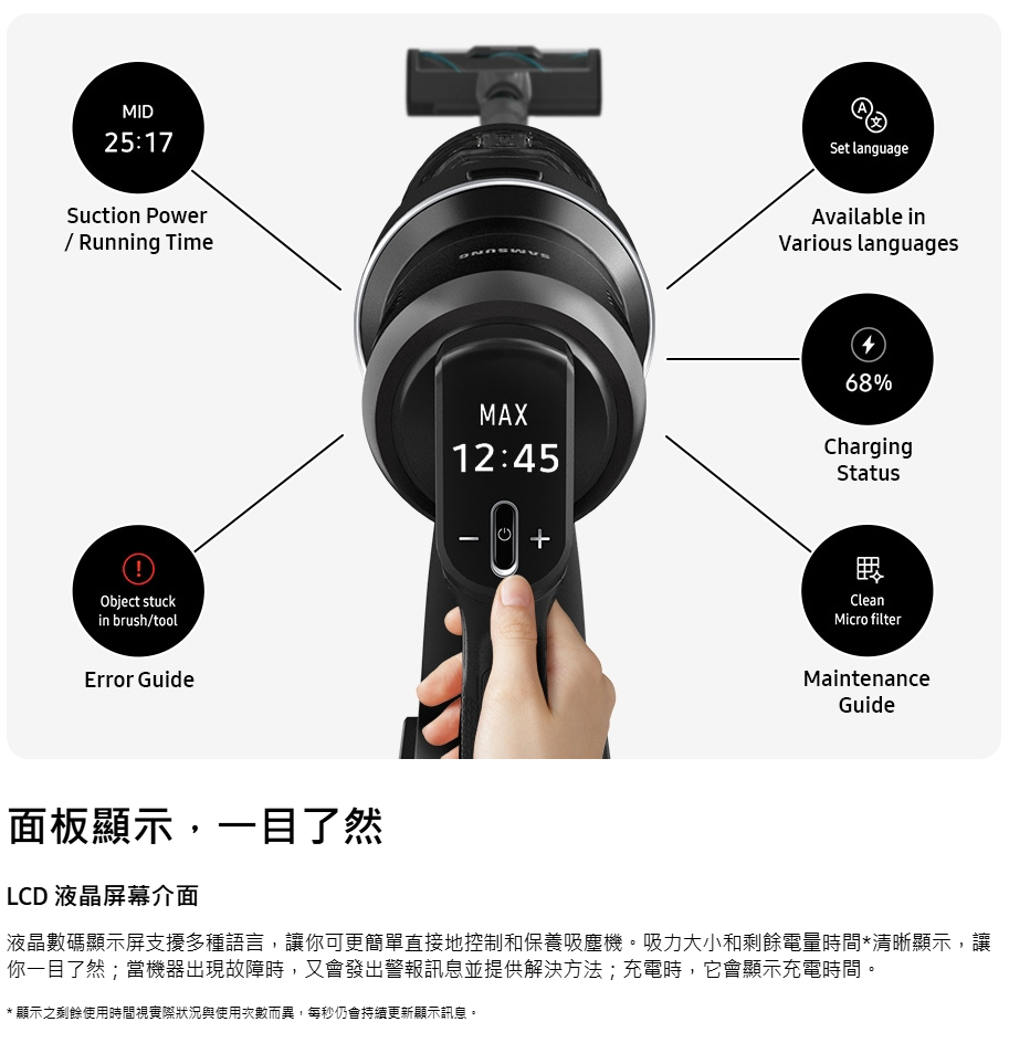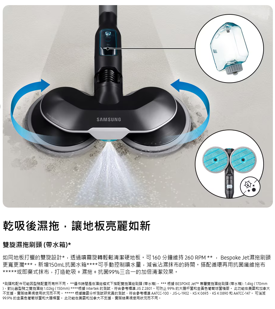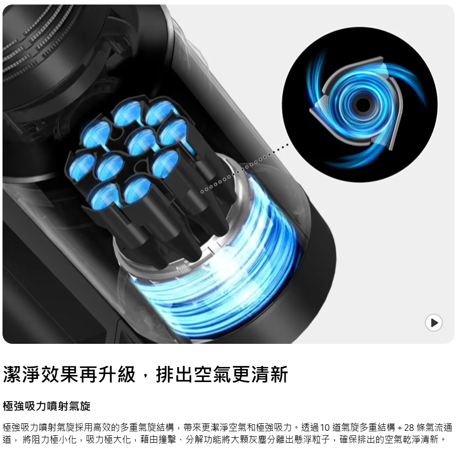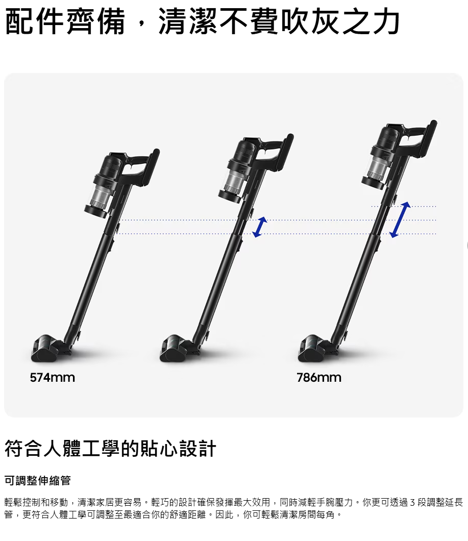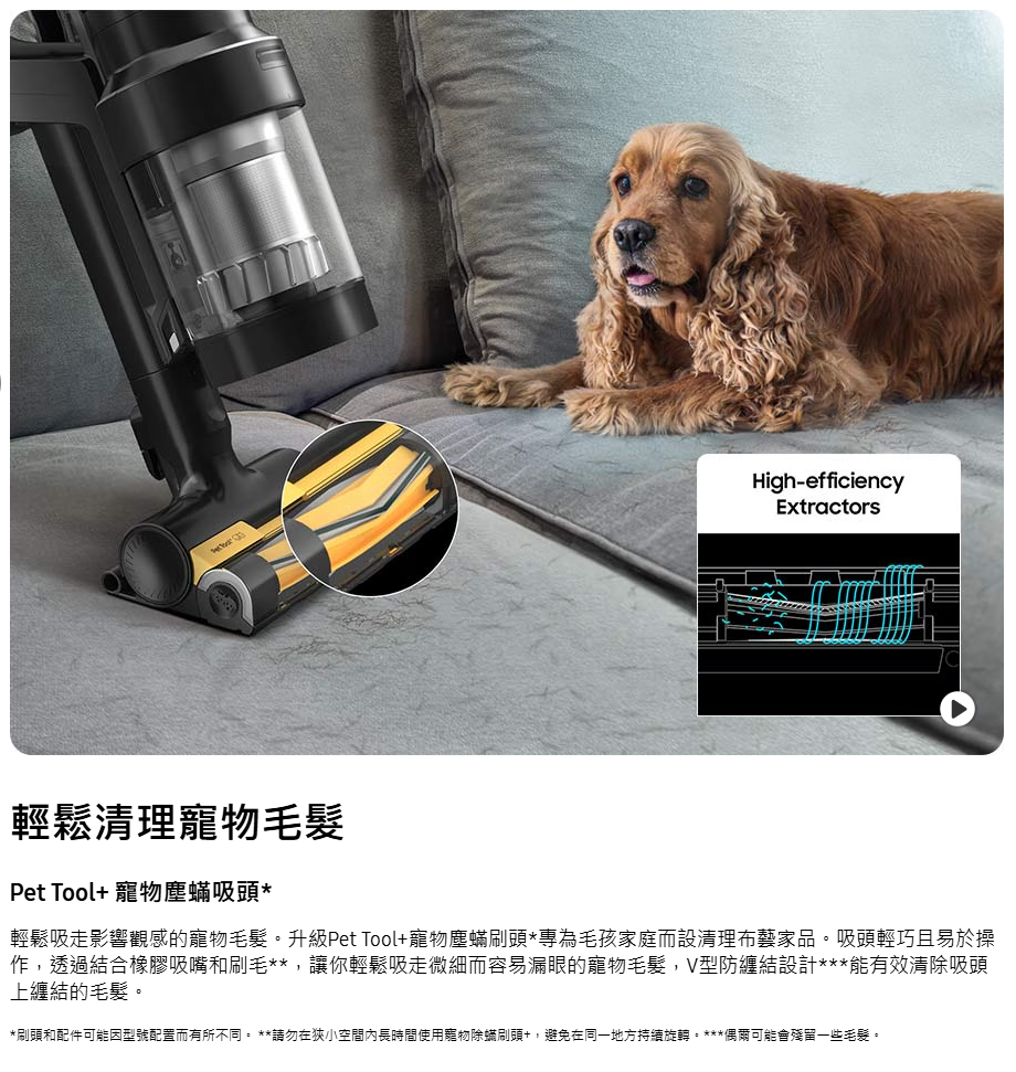 SAMSUNG VS28C979FQK/SP 最強勁的旋風吸塵機,讓你徹底清潔家居 。智能變頻摩打 HexaJet Motor™能產生高達 280 W 超強勁吸力,