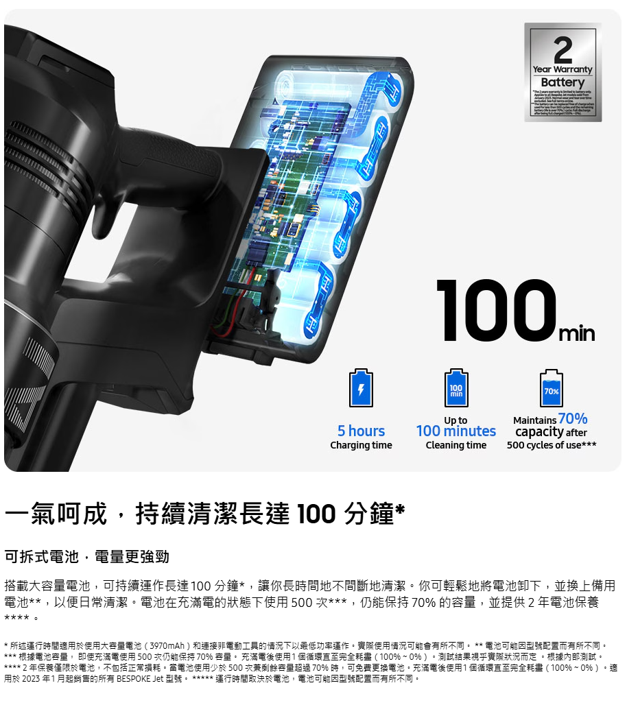 無論任何地板材質都能進行深層清潔。5層濾清系統有效捕捉微細灰塵。一顆電池可持續運作長達 100 分鐘,輕鬆清潔無難度。