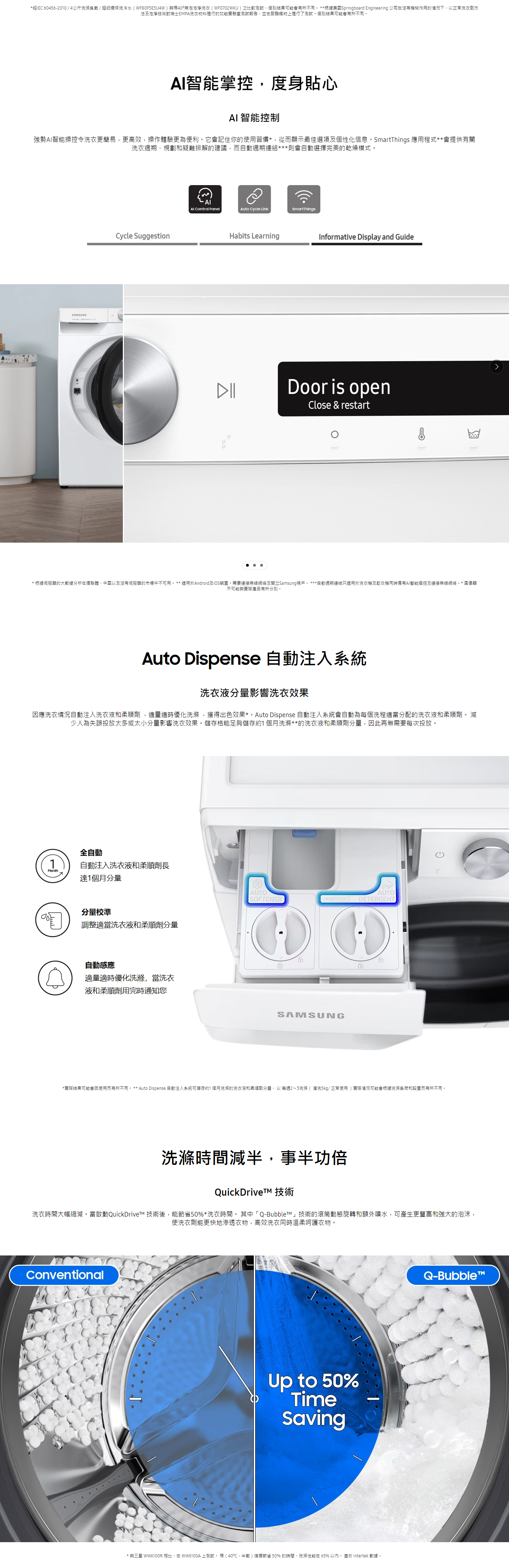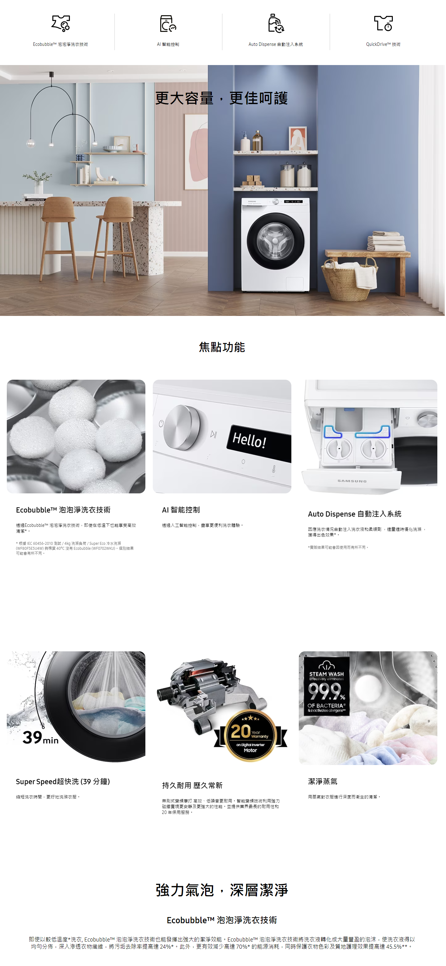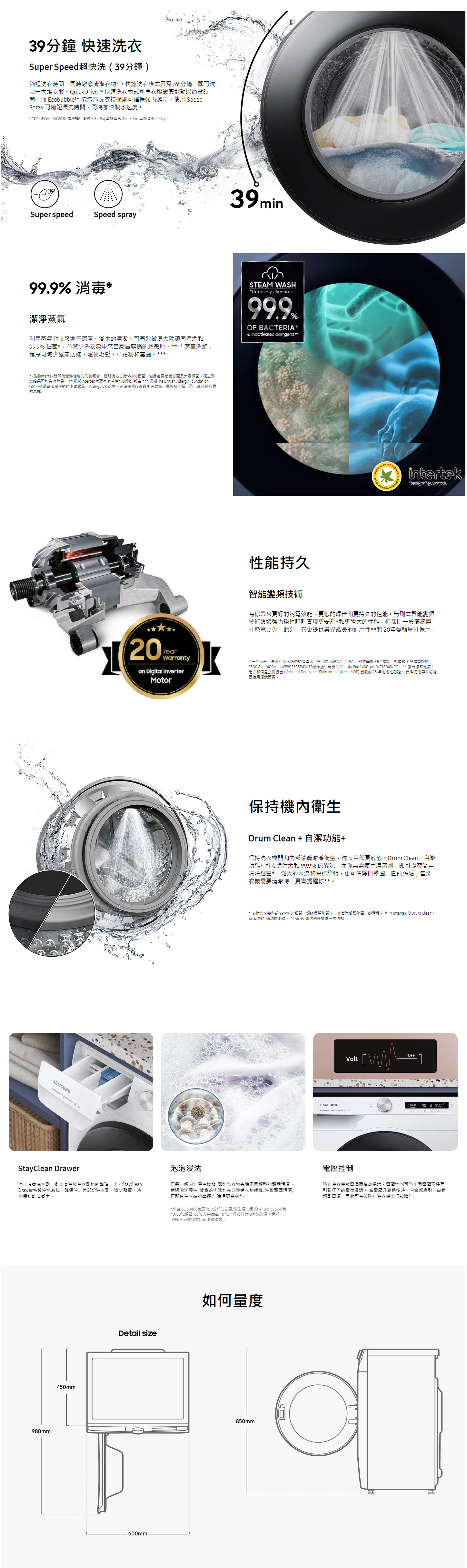 三星 WW80AG6L28BXSH / 8KG 1200轉 前置式洗衣乾