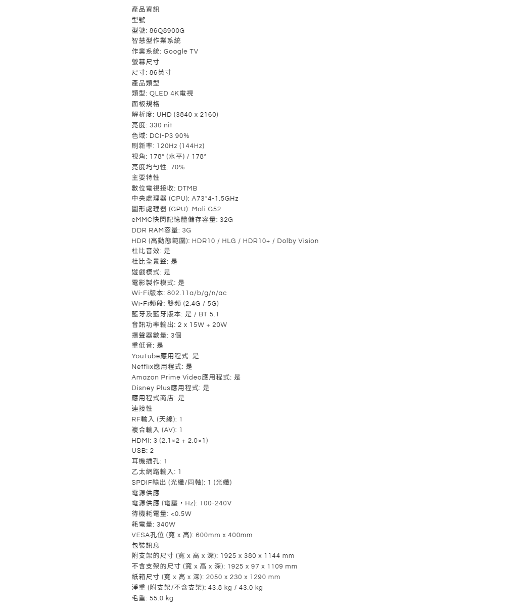 SKYWORTH 86Q8900G SKYWORTH 創維 86" 4K QLED Google TV
