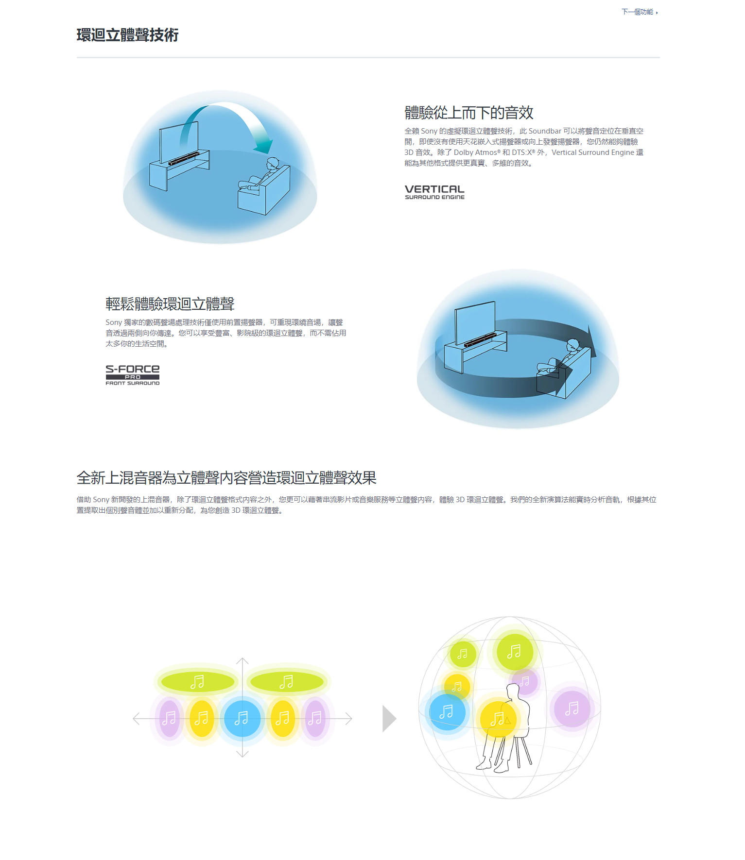 可帶來 3D 環迴立體聲體驗,即使是播放電視劇和串流音樂等立體聲內容亦然。