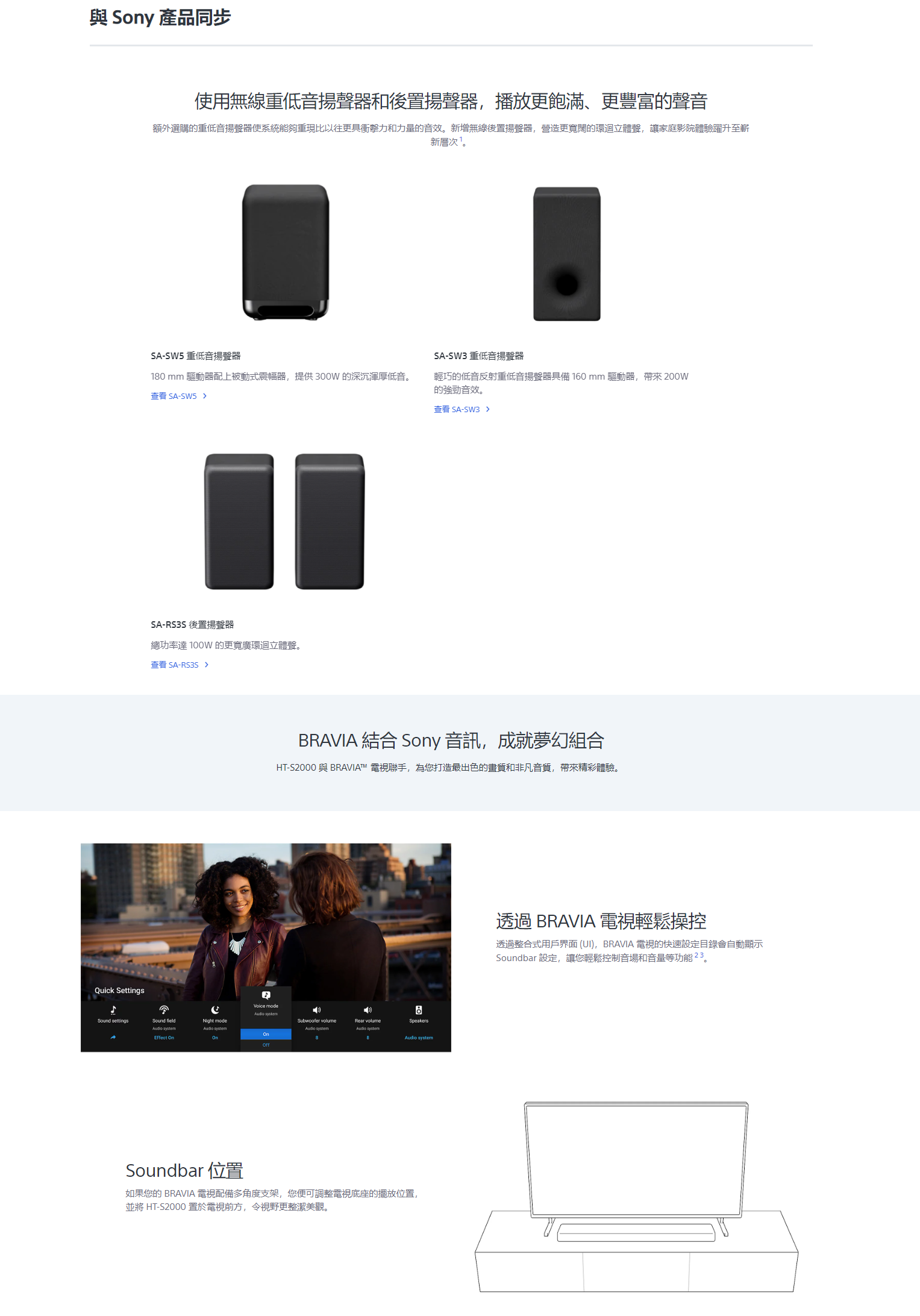 SONY HTS2000 Dolby Atmos DTS:X 3.1 聲道 Soundbar
