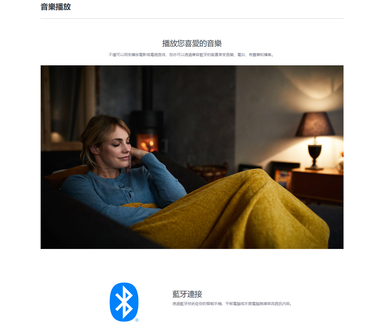 中置揚聲器確保對白清晰,而內置的雙重低音揚聲器則可呈現深沉雄厚的低音。