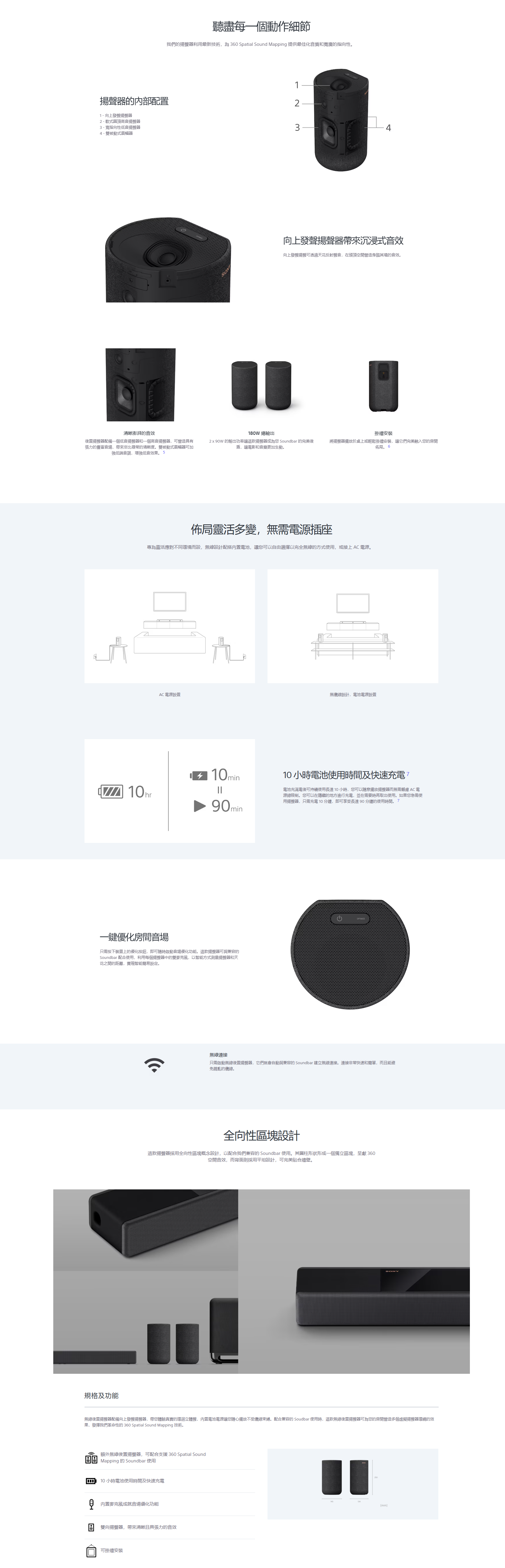 SONY SA-RS5 揚聲器配備向上發聲揚聲器和寬指向性低音揚聲器,可配合我們兼容的最新型號 Soundbar,