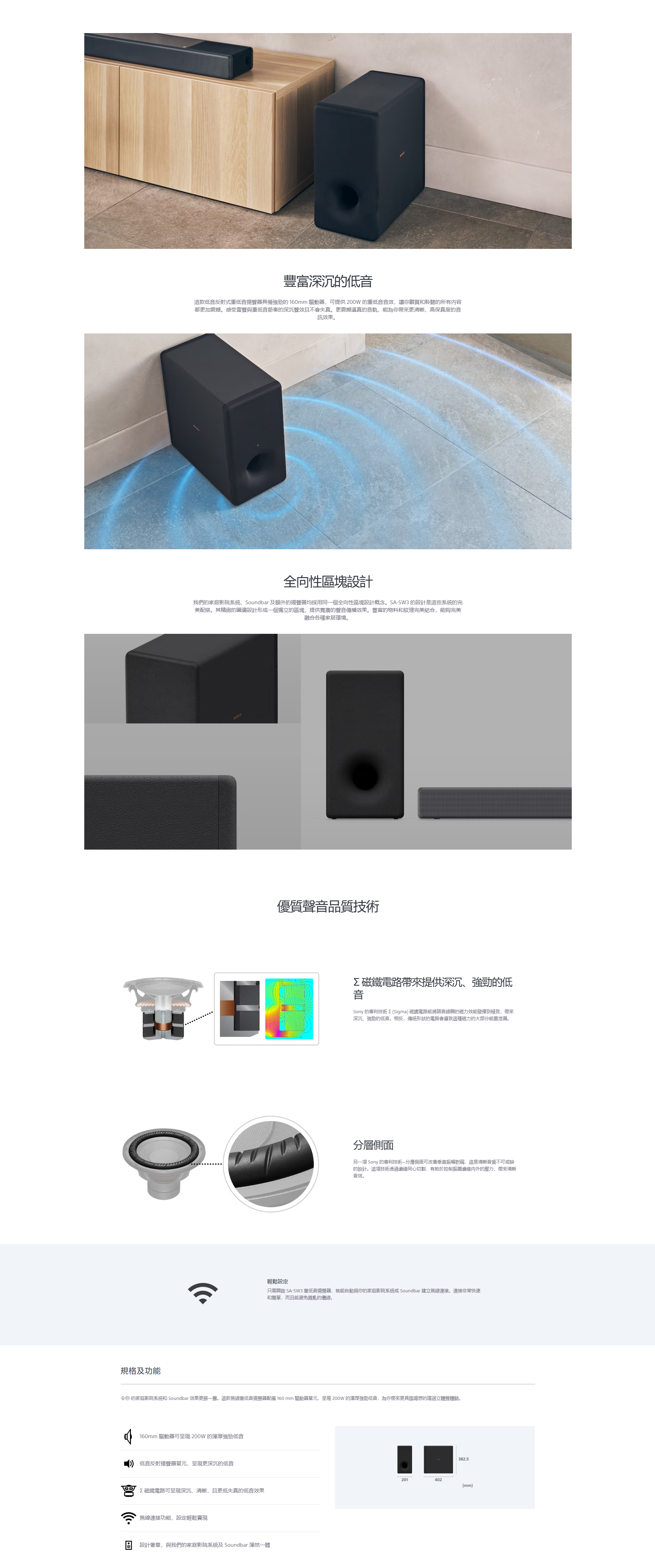 SONY SA-SW3 SONY 200W 無線重低音揚聲器 , 配備強勁的 160mm 驅動器和被動式震幅器
