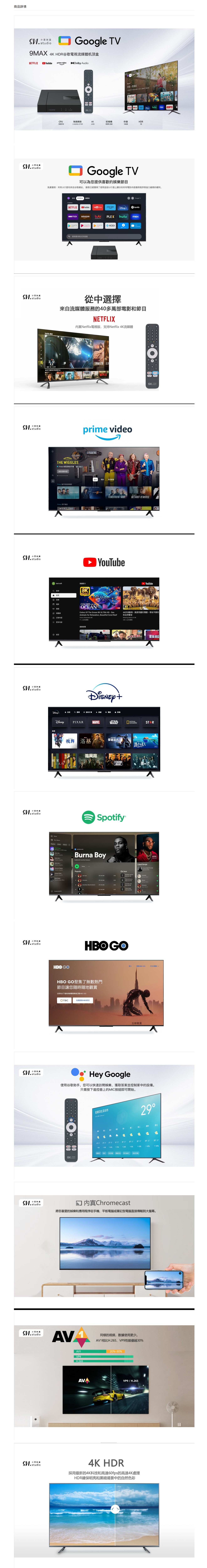小雲盒子 9MAX 內置 GOOGLE TV 支援 4K HDR 及 AV1 編碼技術