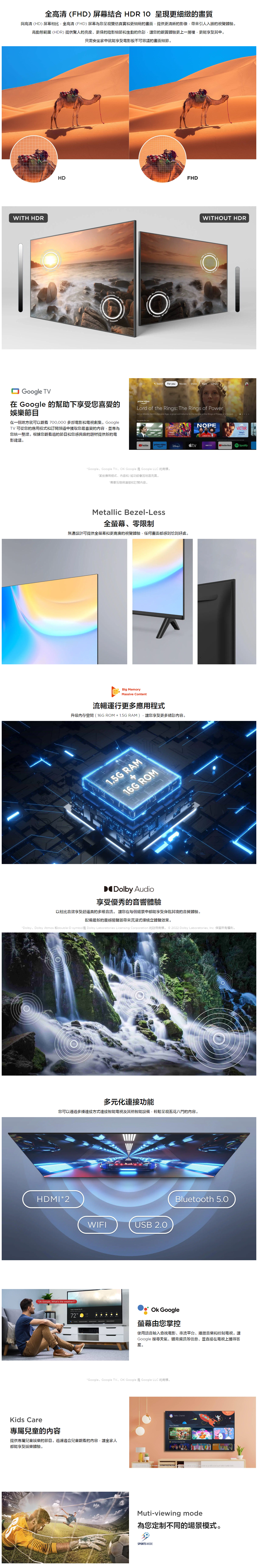 TCL 43S5400 FHD 1080p Google TV 全高清智能電視