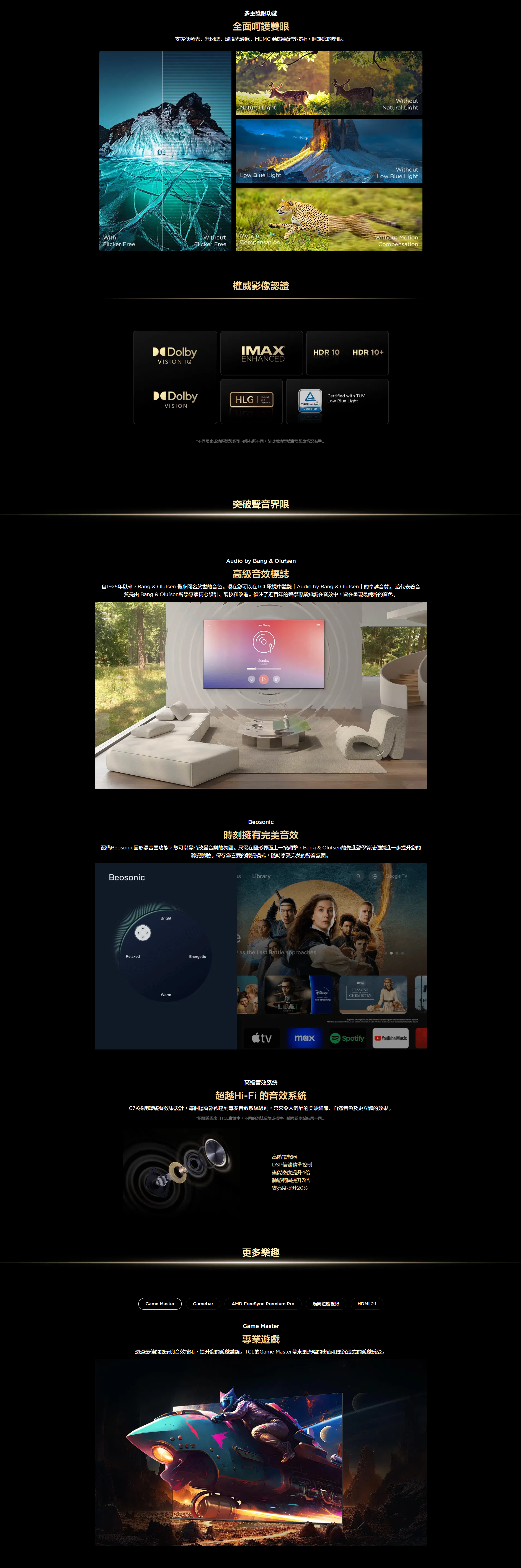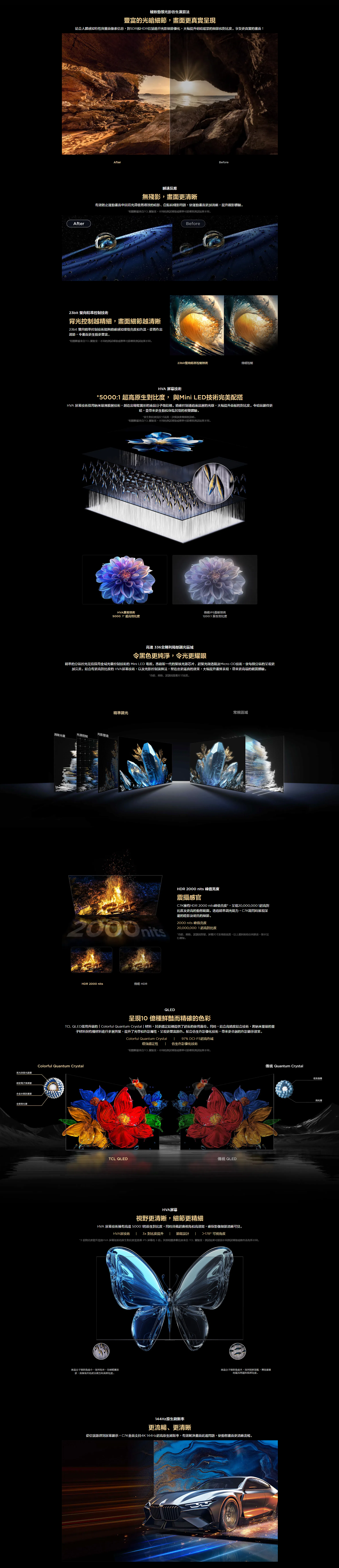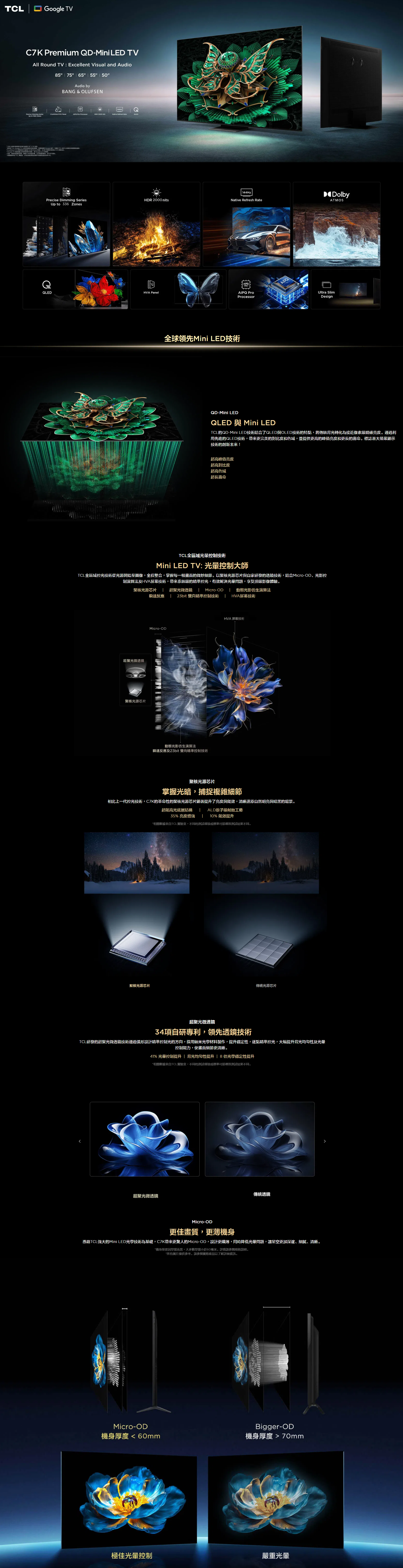 TCL C7K 的 QD-Mini LED技術結合了QLED與OLED技術的特點,將傳統背光轉化為接近像素級精確亮度。