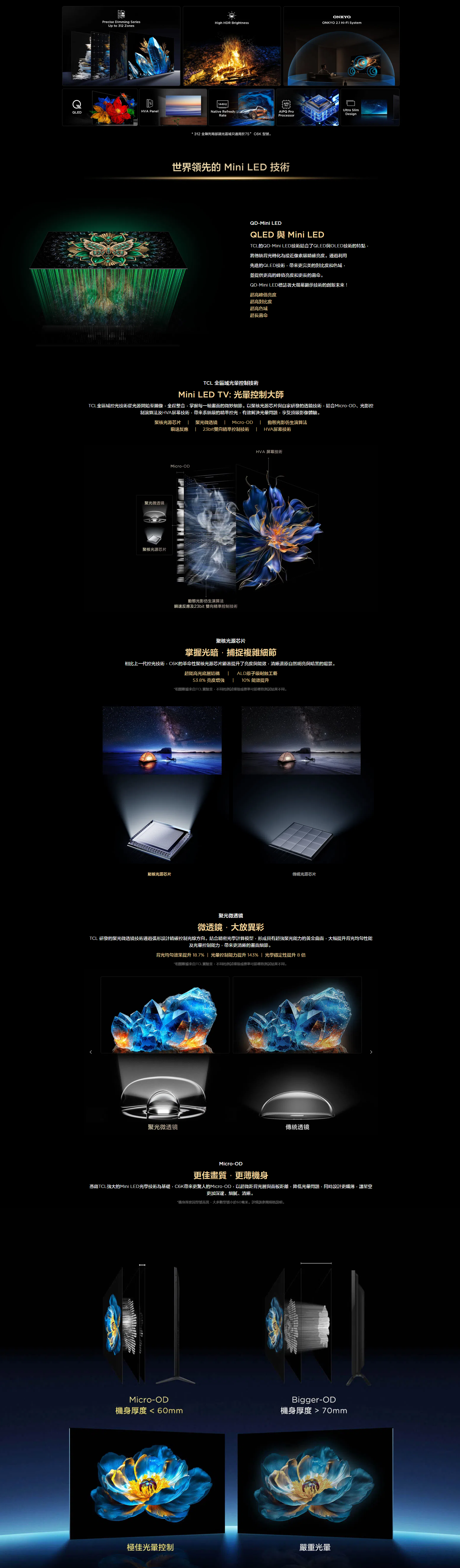 C6K 系列擁有精準的分區控光。憑藉新一代的聚核光源芯片、聚光微透鏡及Micro-OD技術,使每個分區的呈現更加完美。