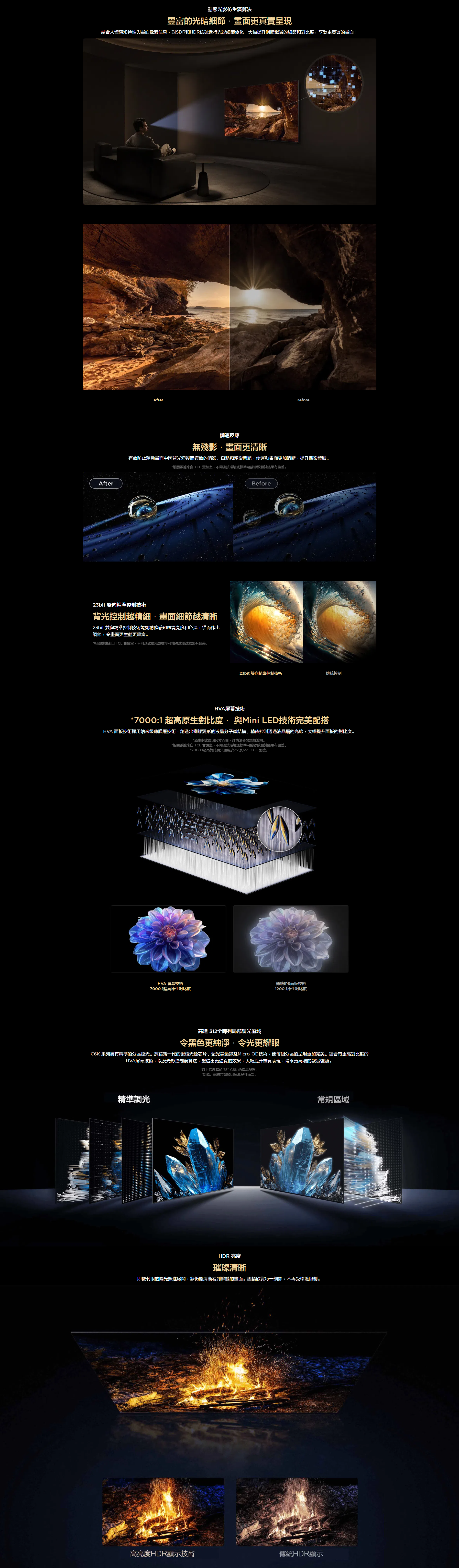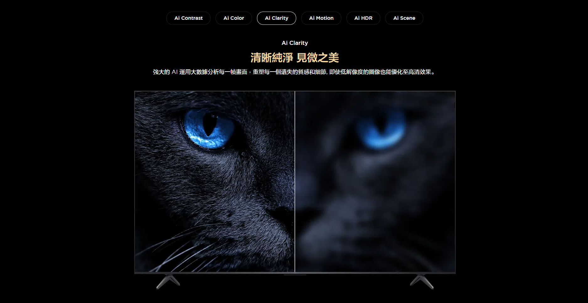 結合有更高對比度的 HVA屏幕技術,以及光影控制演算法,塑造出更逼真的效果,大幅提升畫質表現,帶來更高端的觀賞體驗。