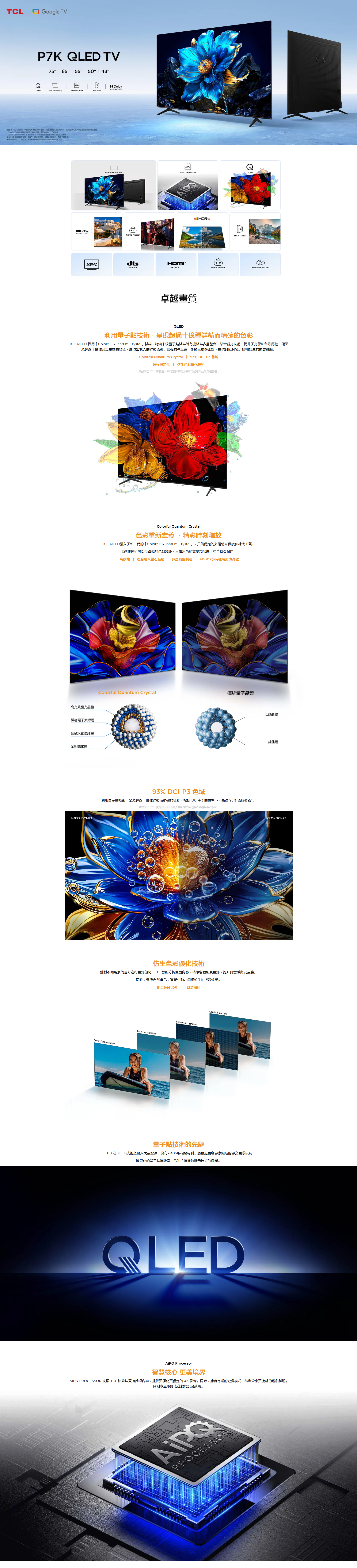 TCL QLED 採用「Colorful Quantum Crystal」材料,將納米級量子點材料與有機材料多層整合,結合背光技術,提升了光學和色彩屬性。