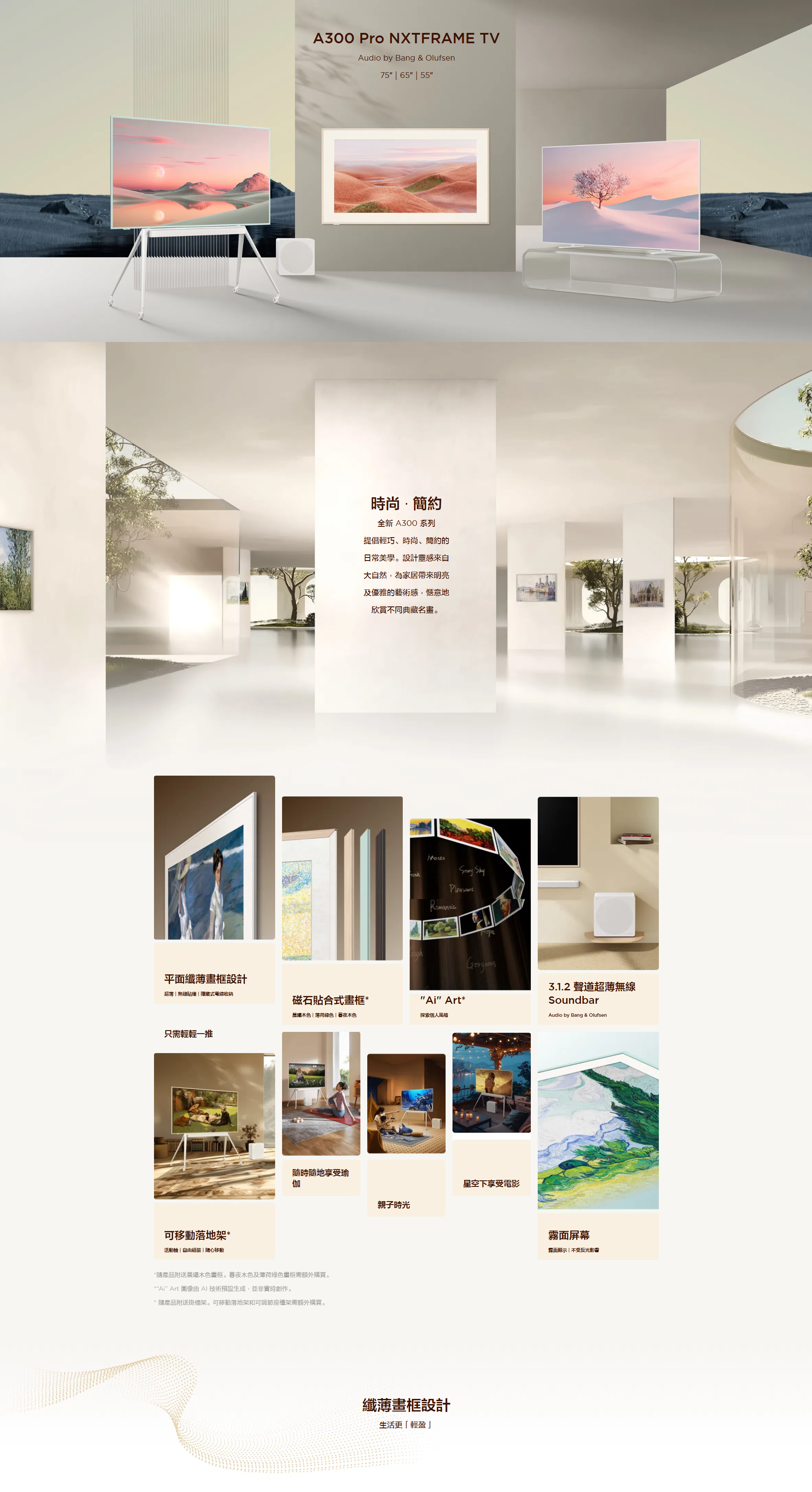 全新 TCL 65A300PRO 系列 , 提倡輕巧、時尚簡約的日常美學。TCL 畫框電視