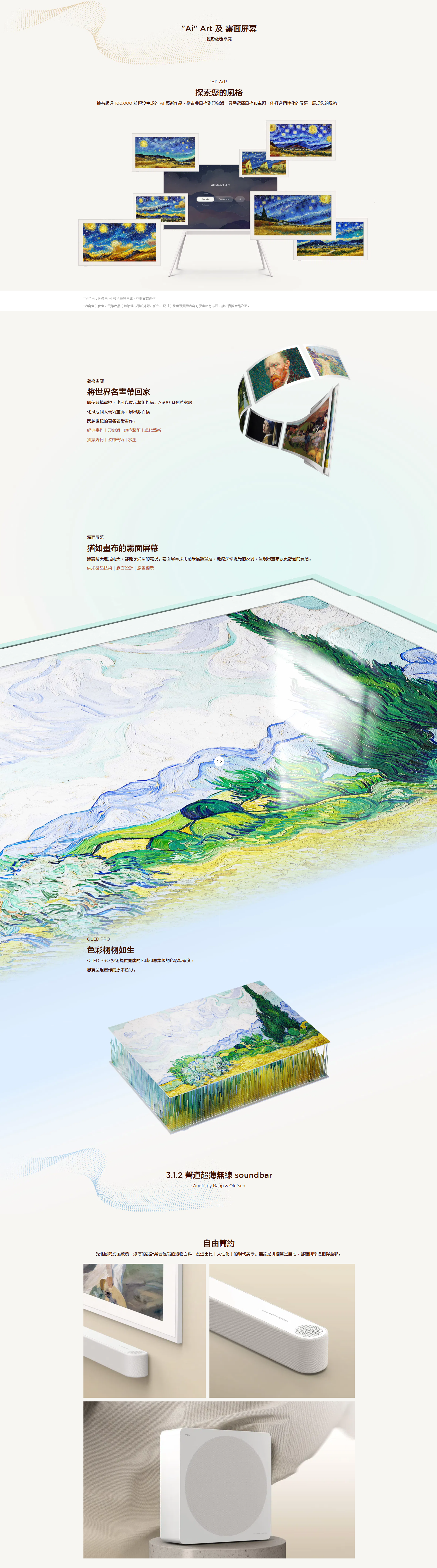 4K QLED PRO 霧面屏幕採用納米晶體塗層,能減少環境光的反射,呈現出畫布般更舒適的質感。