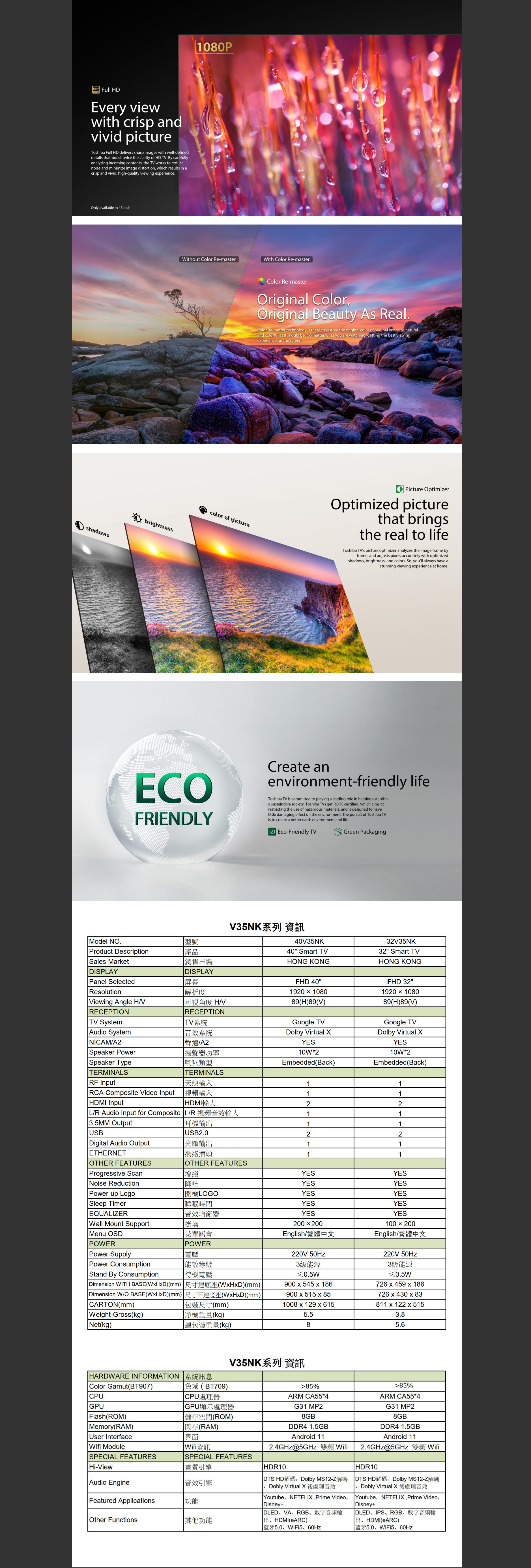 Toshiba 40V35NK 40吋 FHD 智能電視,專為追求高質素娛樂體驗的用家而設。