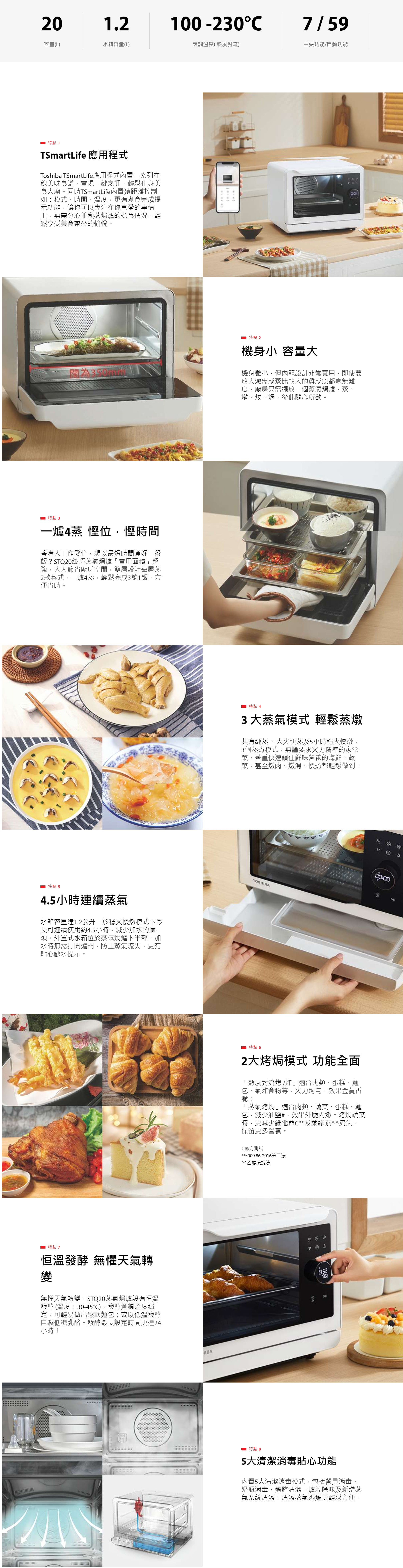 STQ20智能蒸氣焗爐採用了TOSHIBA先進技術,集蒸、炸、焗、燉、蒸焗和發酵於一身,