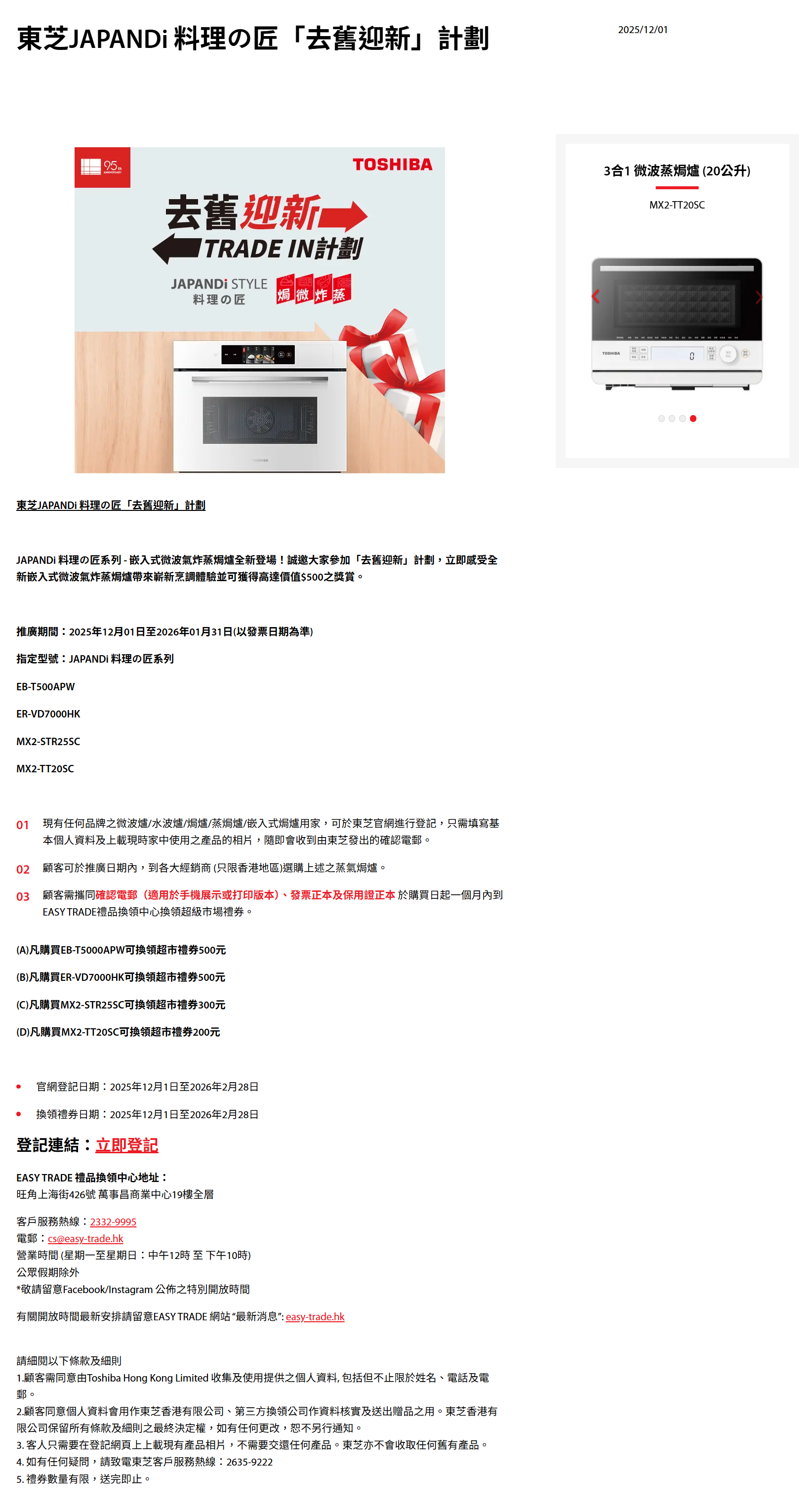 TOSHIBA MX2-TT20SC 3合1 20公升微波蒸焗爐,⭐全新香港行貨 , 原廠一年保養🚚免費送貨 ( 偏遠地區除外 )⭐一機三用,3合1微波蒸焗爐採用了TOSHIBA先進技術,集微波、蒸氣、烤焗於一身,可滿足您的各種烹飪需求,適合香港小廚房使用。
