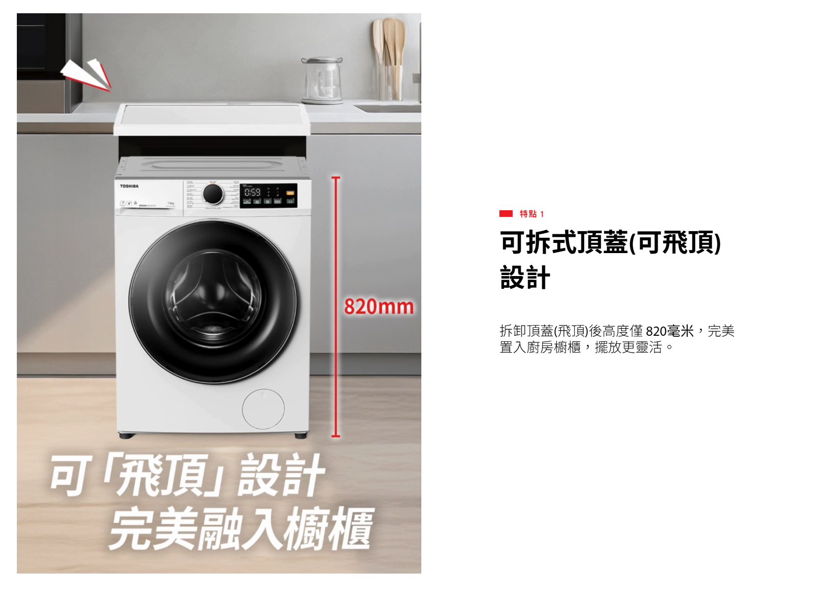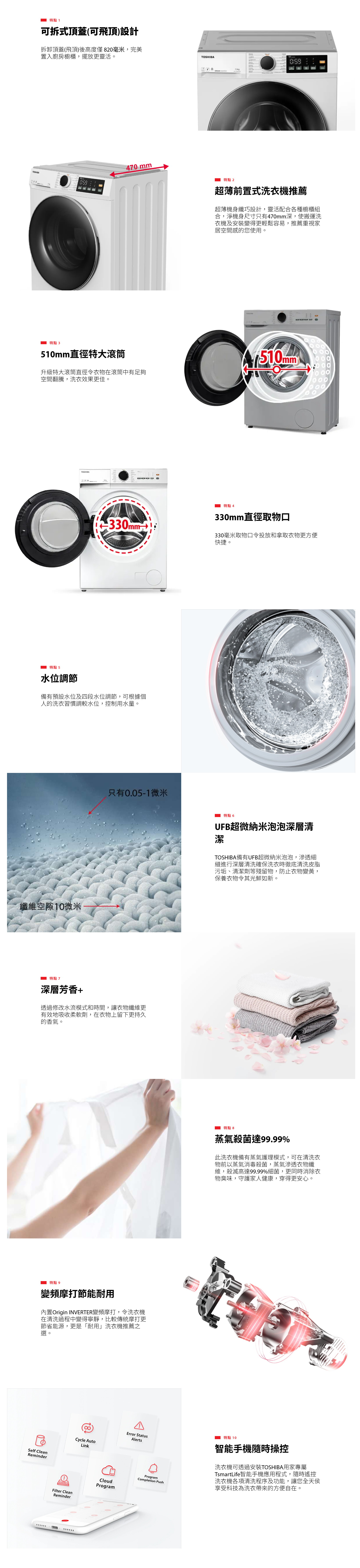 TOSHIBA 東芝 TW-T22BU95UWH(WK)-B(飛頂型號)8.5KG 1400轉超薄身前置式變頻洗衣機,⭐全新香港行貨⭐原廠兩年全機及10年壓縮機保養🚚免費送貨及基本安裝(偏遠地區除外)⭐( 改喉 , 抽針 , 插針另計 )⭐飛頂後高度僅820mm、淨深470mm完美嵌入櫥櫃,尺寸W595 x H820 x D585mm(連門及去水喉),重量64kg,一級能源標籤慳電。