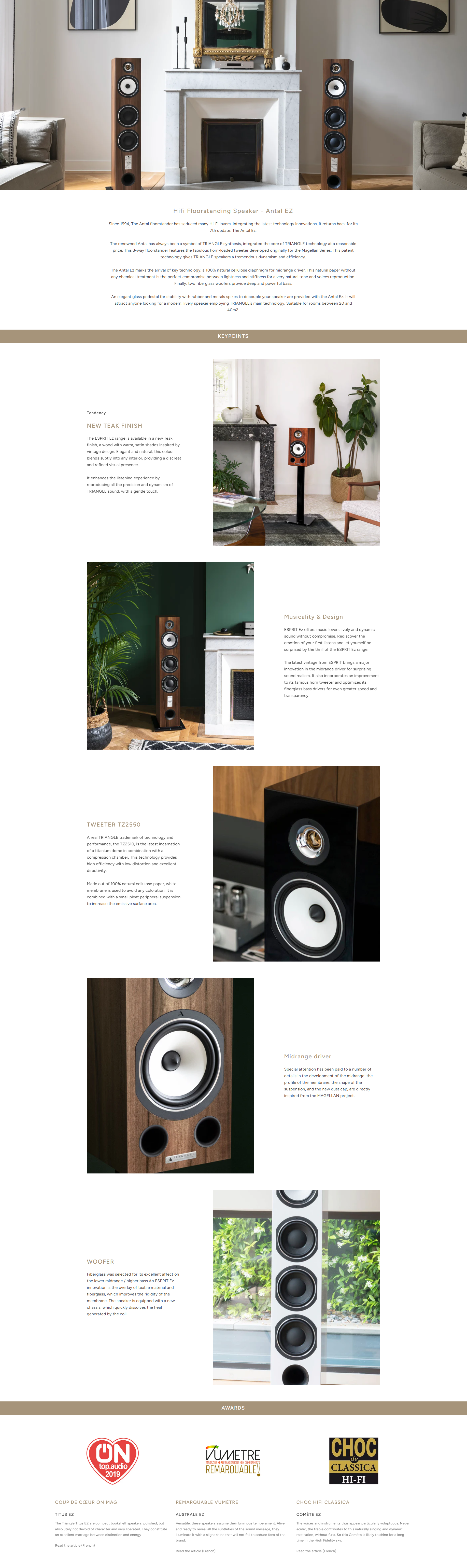 法國 Triangle 經典代表作!Antal Ez 三路四單元座地喇叭 (黑色),為您的客廳打造殿堂級發燒體驗。配備品牌標誌性的 TZ2550 鈦金屬號角高音,帶來極致通透的高頻與龐大音場;結合 16cm 天然纖維中音及雙玻璃纖維低音單元,完美演繹醇厚人聲與深沉澎湃的低頻動態。高雅的玻璃底座設計盡顯法式美學。於 HD Life 選購,即享⭐全新香港行貨 , 原廠一年保養⭐🚚免費送貨 ( 偏遠地區除外 )⭐