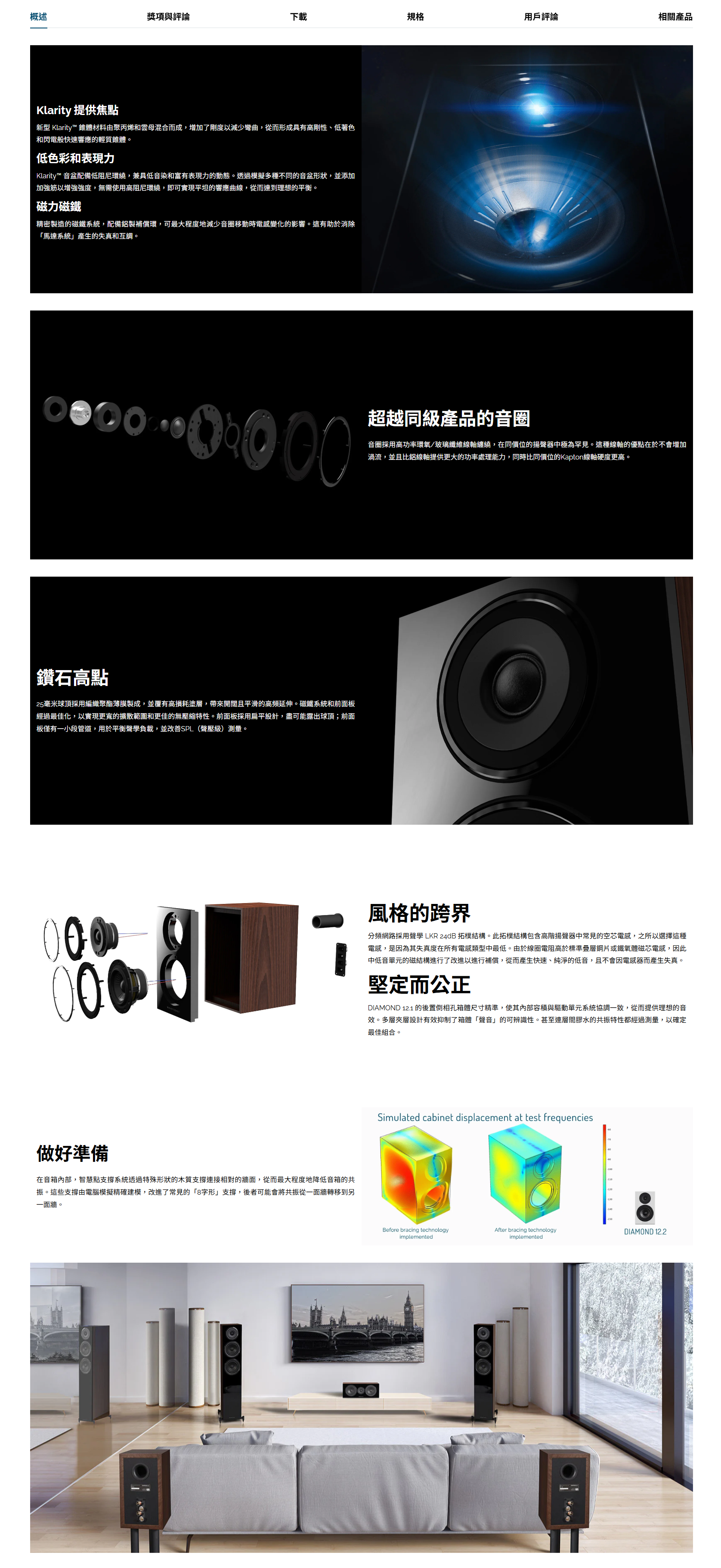 它採用兩個 130mm(5 吋)KlarityTM 單元,呈現準確細緻的中低頻,而 25mm(1 吋)球頂高音單元則帶來開闊、
