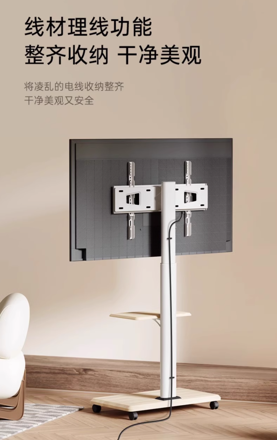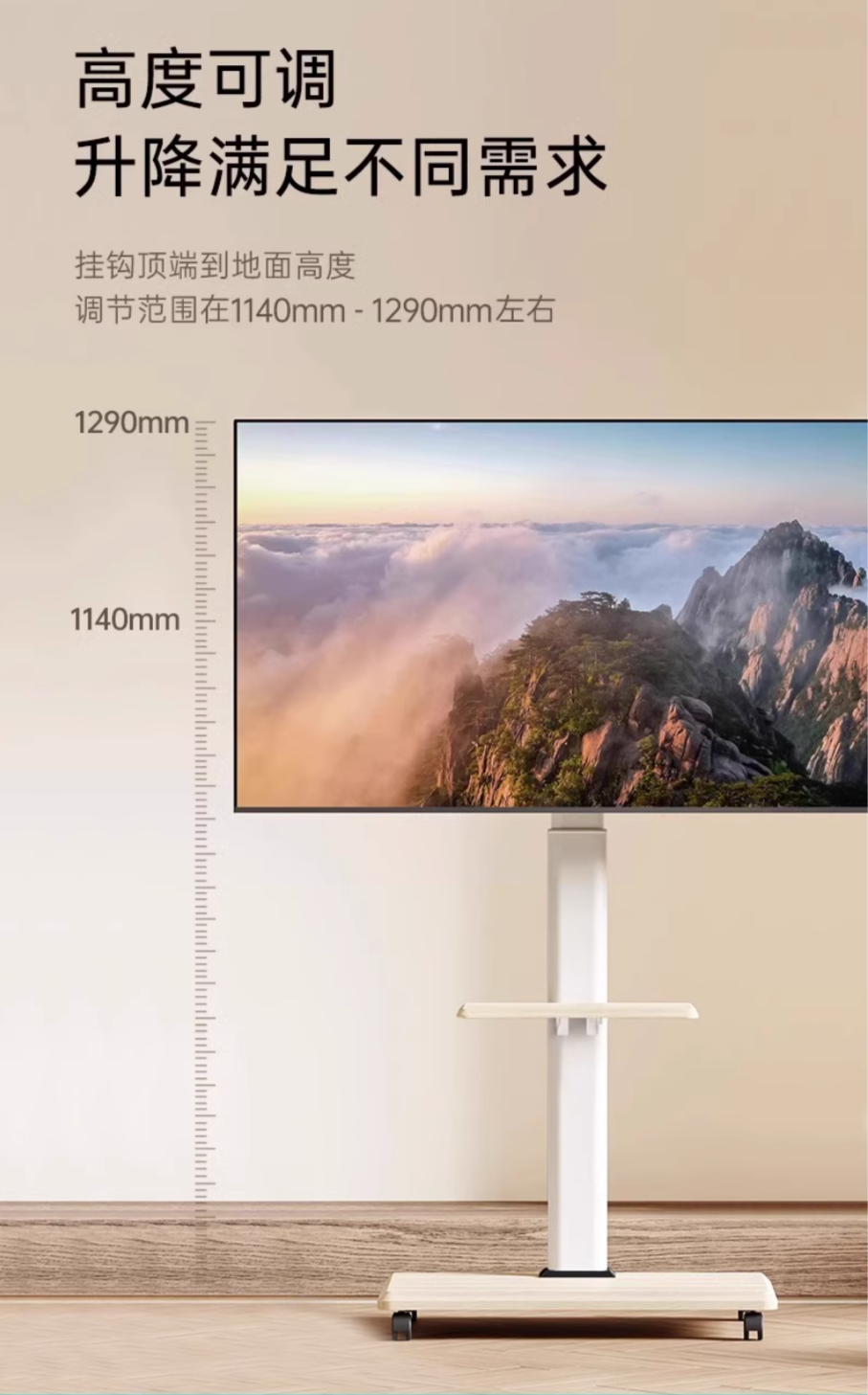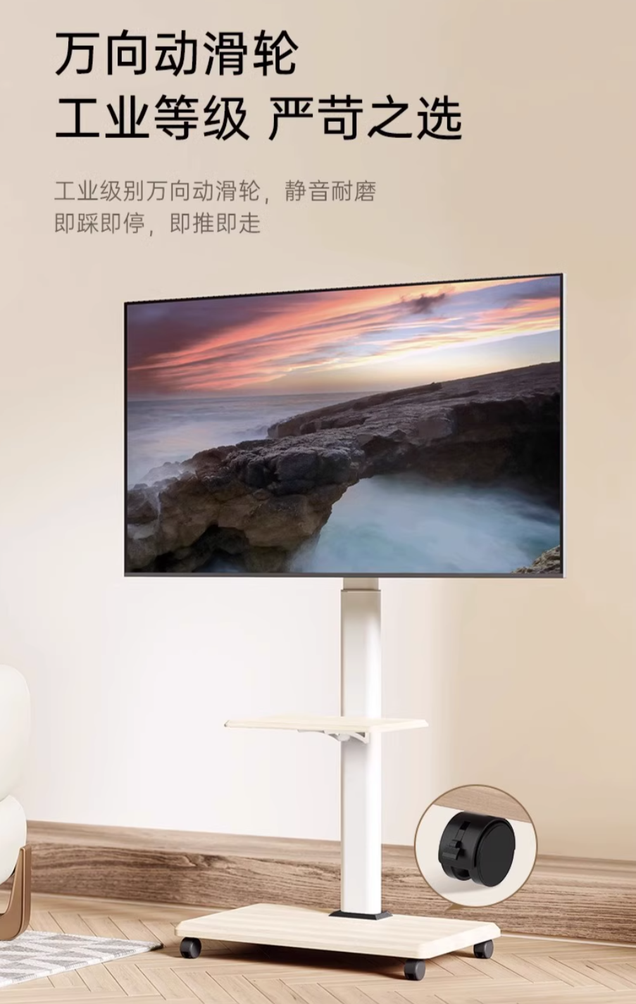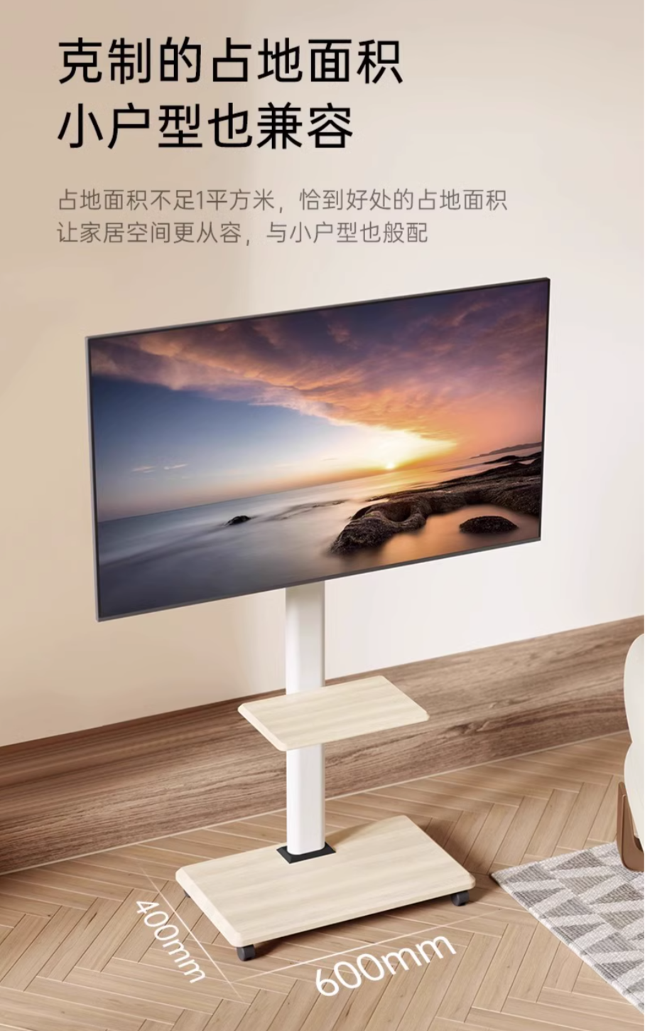 可移動式白色電視座地架連木色層板(適合 37"-75") FKYDTCG2W