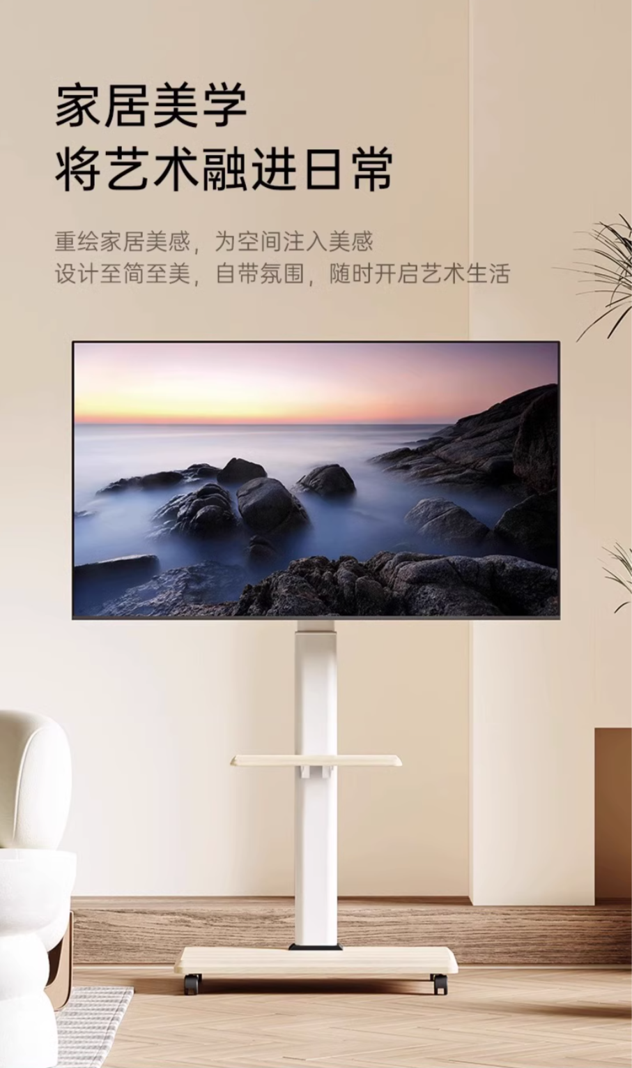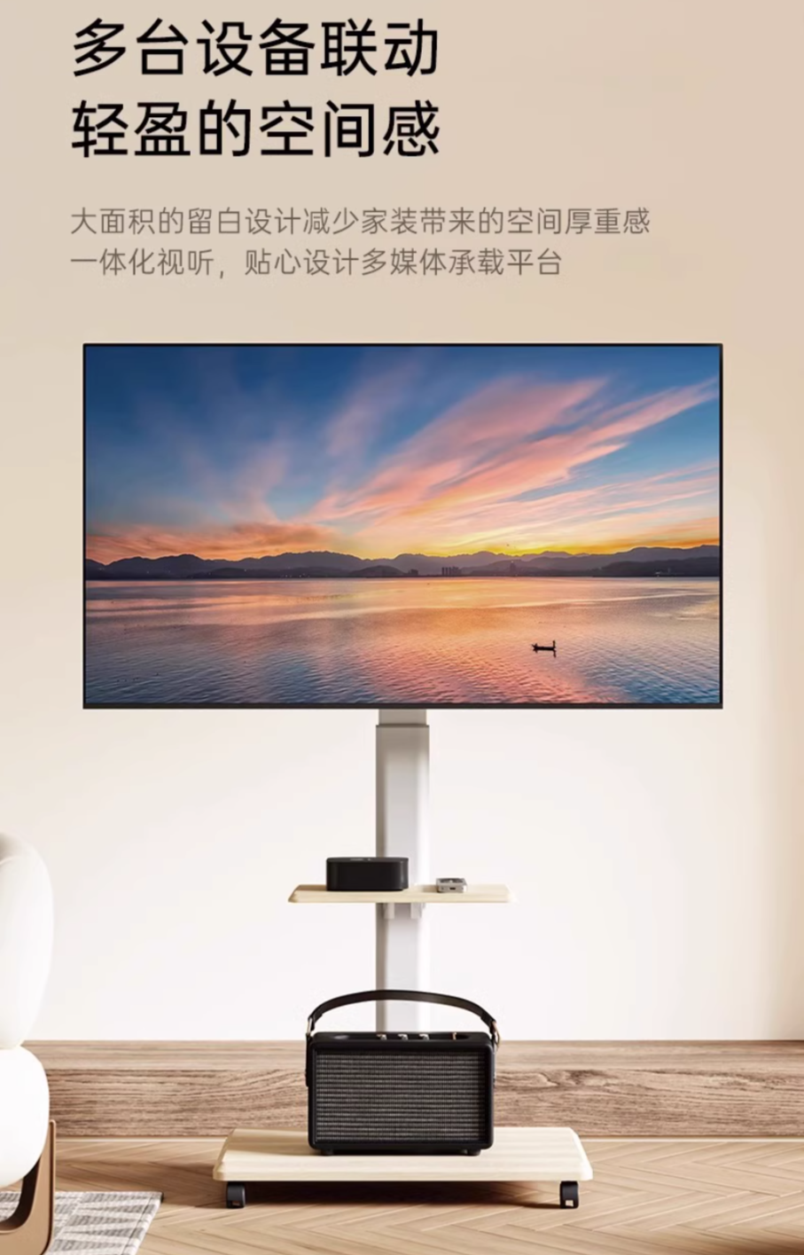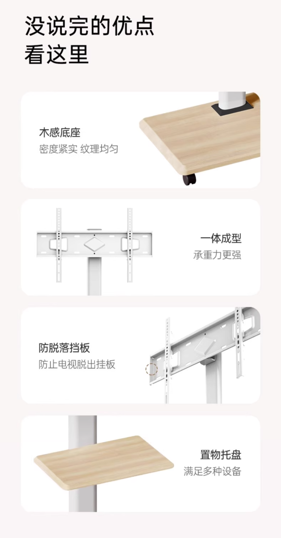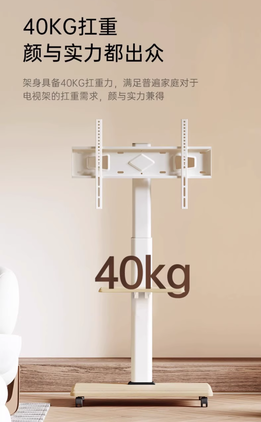 可移動式白色電視座地架連木色層板(適合 37"-75") FKYDTCG2W