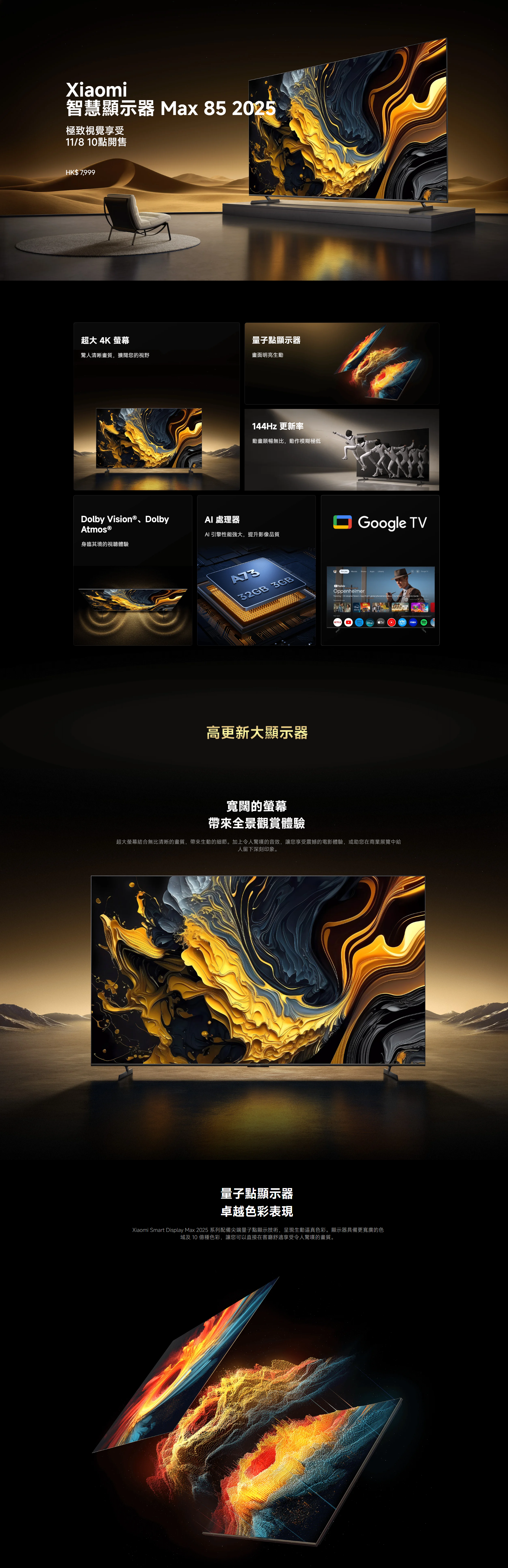 Xiaomi Max 85 2025 小米 85" QLED 智慧顯示器 小米 85吋 QLED Display