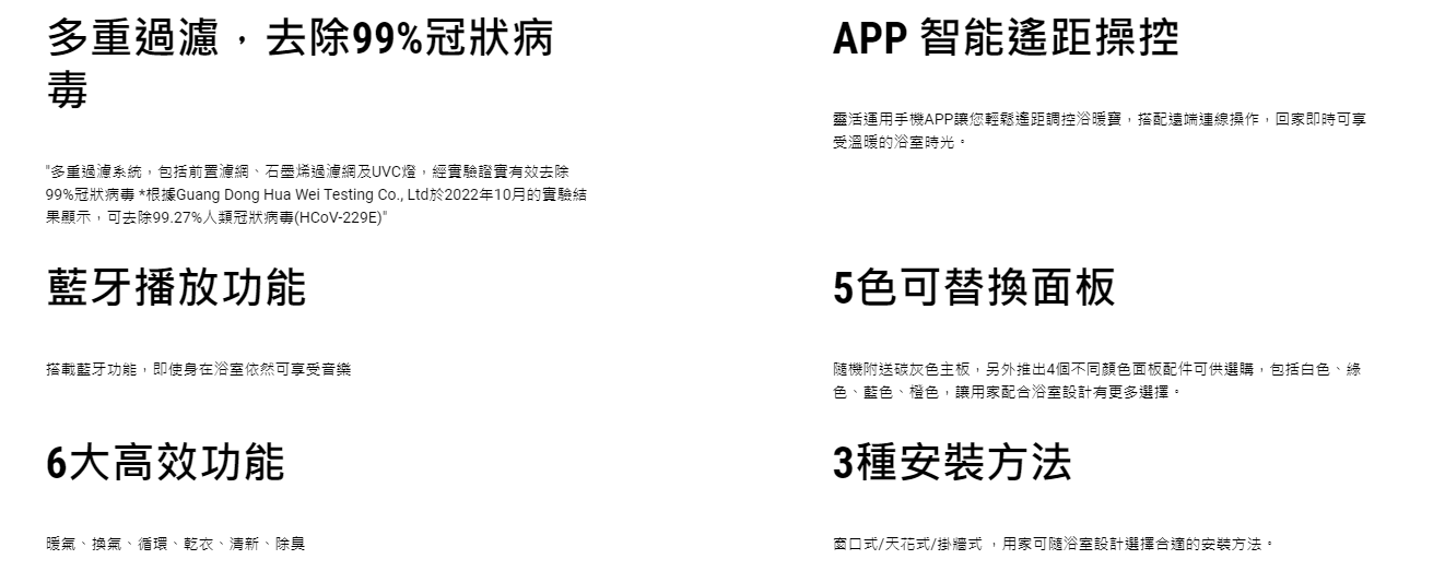 6大高效功能 , 暖氣、換氣、循環、乾衣、清新、除臭